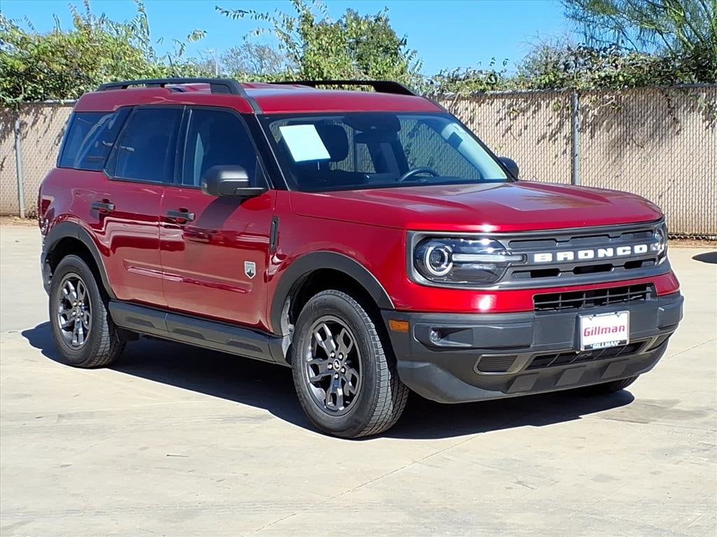 Experience adventure in this sporty Red 2021 Ford Bronco Sport Big Bend AWD SUV. Powered by an efficient EcoBoost 1.5L Turbo engine paired with an 8-speed shiftable automatic transmission, this Bronco Sport is ready for all terrains with its advanced AWD system. Stay connected and entertained with an 8-inch touchscreen featuring Apple CarPlay, Android Auto, SYNC infotainment, and hotspot Wi-Fi. Safety comes first with features like Front Automatic Emergency Braking, Lane Keeping Assist, Blind Spot Safety, Rear Cross Traffic Alert, and a Rearview Camera System. Enjoy comfort and convenience with premium cloth upholstery, automatic climate control, push-button start, power-adjustable driver seat, and a dual level cargo area for extra storage. Rugged aluminum alloy wheels, LED headlights and taillights, and black roof rails add to its bold styling. Take control with drive mode selector, cruise control, and a suite of smart device app functions including remote start and vehicle location through FordPass Connect. Ready for your next journey-test drive this versatile Bronco Sport today!Certified Pre-Owned