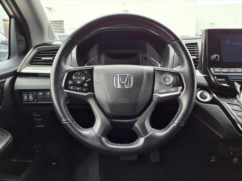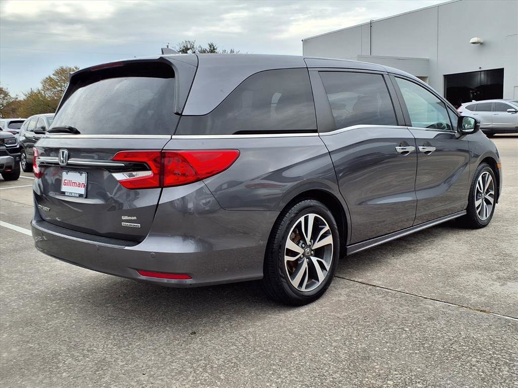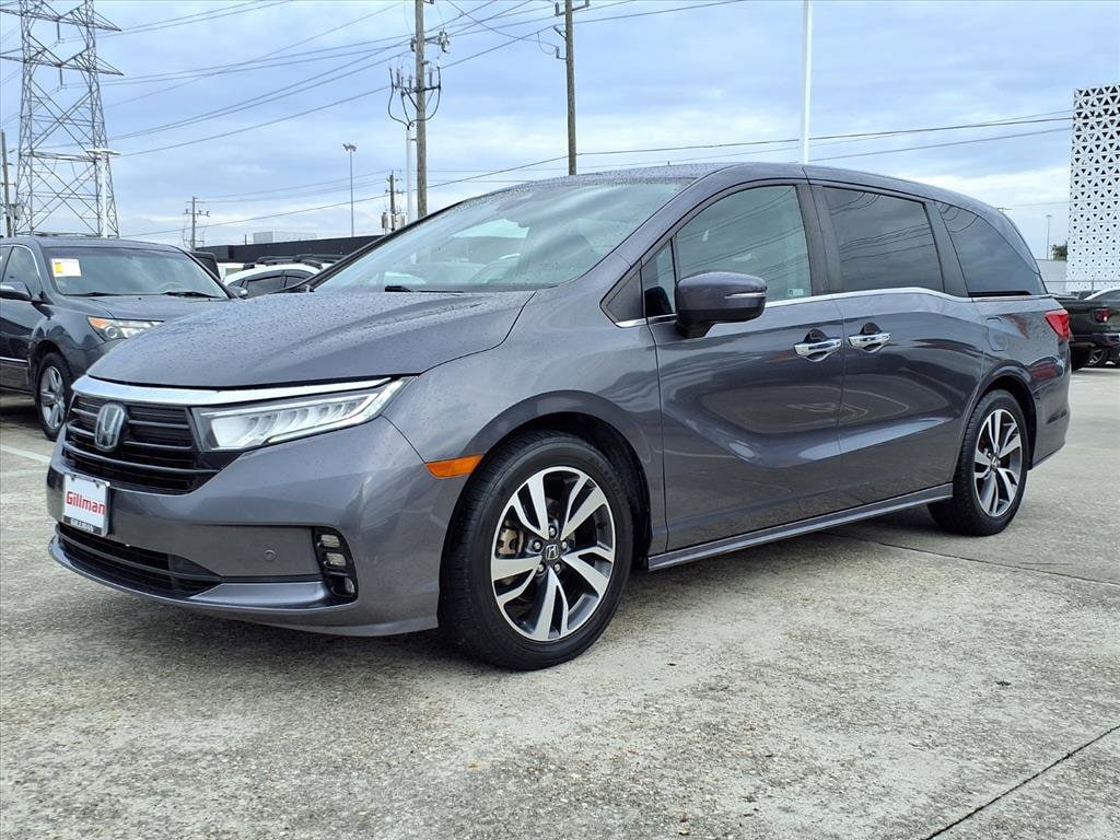 Gillman's Lifetime Engine Warranty lasts as long as you own your vehicle - free with the Gillman Pre-Owned Promise. If the vehicle isn't right for you, return it in purchase condition within 2 days or 200 miles as part of our Happy-Driving Guarantee. (Valid on vehicles under 90,000 miles and less than 7 years old). Upgrade your family travels with this 2021 Honda Odyssey Touring in sleek Dark Gray. Enjoy the smooth power of a 3.5L V6 engine paired with a 10-speed automatic transmission and FWD for a comfortable, confident drive. This Odyssey is packed with premium features, including a power-operated rear liftgate, power sliding side doors, leather-trimmed upholstery, heated front seats, and a power moonroof. Stay safe with advanced driver aids like adaptive cruise control, lane keeping assist, front and pedestrian automatic emergency braking, blind spot monitoring, and rear cross traffic alert. Tech-savvy families will appreciate the 8-inch touchscreen with Apple CarPlay and Android Auto, built-in navigation, rear entertainment system with Blu-Ray player, Wi-Fi hotspot, rear passenger camera, and HondaLink smart device integration. With flexible seating for up to 8, power-adjustable front seats, and tri-zone automatic climate control, comfort comes standard. Visit today to experience the space, safety, and technology that make the Odyssey Touring a standout choice for busy families. All vehicles subject to prior sale. We are not responsible for typographical errors and may change information without notice. Photos may not depict the actual vehicle. Tax, title, and license fees not included. Dealer Discount available to all buyers.Vehicles purchased from Gillman Automotive Group include a Bring It Back Guarantee: return the vehicle in purchase condition within two days or 200 miles. New current-model-year vehicles and qualifying pre-owned vehicles (under 90,000 miles and less than 7 years old) are eligible. Guarantee is non-transferable and has no cash value. Lifetime Warranty available on select pre-owned vehicles. See dealer for details; restrictions may apply.Certified Pre-Owned