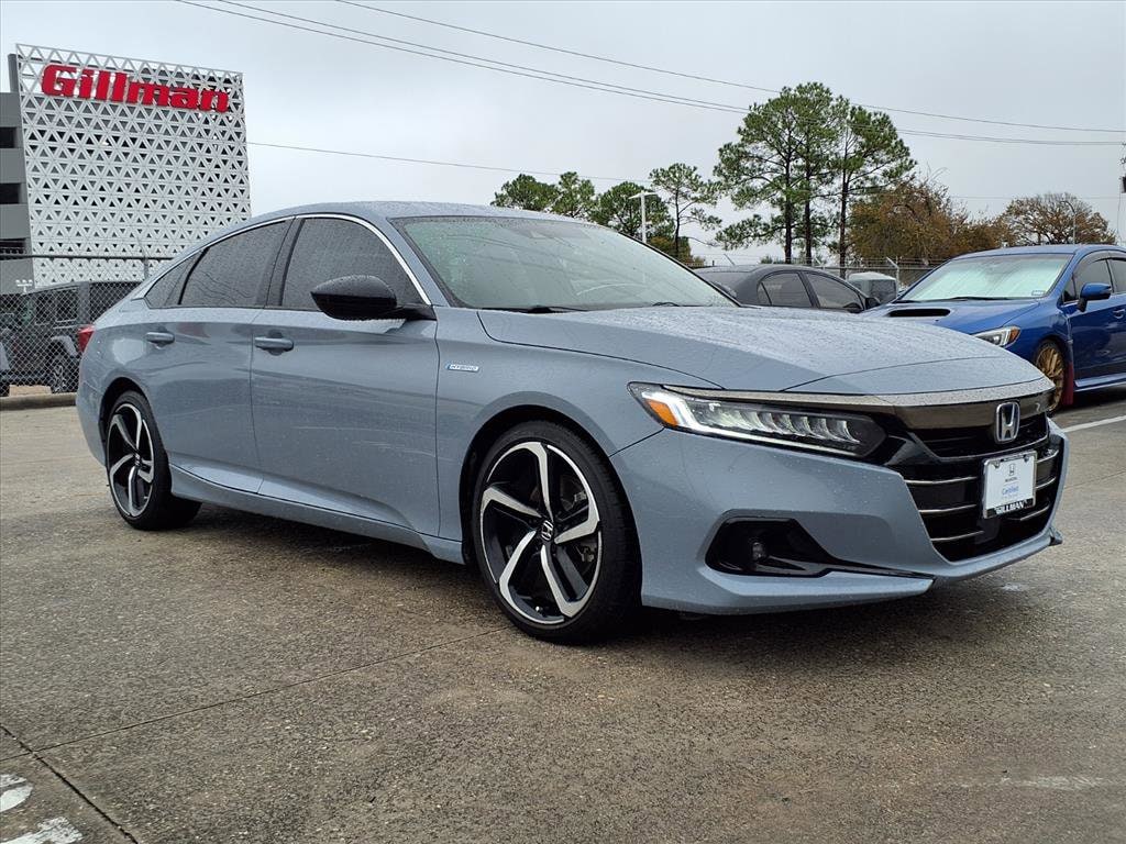 Gillman's Lifetime Engine Warranty lasts as long as you own your vehicle - free with the Gillman Pre-Owned Promise. If the vehicle isn't right for you, return it in purchase condition within 2 days or 200 miles as part of our Happy-Driving Guarantee. (Valid on vehicles under 90,000 miles and less than 7 years old). Experience the perfect blend of performance and efficiency with this 2022 Honda Accord Hybrid Sport Sedan. Powered by a 2.0L Hybrid I4 engine delivering 212hp and a smooth 1-speed direct-drive automatic transmission, this Accord offers impressive fuel economy without sacrificing power. Enjoy advanced connectivity with wireless Apple CarPlay and Android Auto, an 8-inch infotainment screen, Bluetooth, and HondaLink compatibility. Stay confident on the road with adaptive cruise control, lane keeping assist, front automatic emergency braking, and pedestrian detection. Comfort features include heated front seats, dual-zone automatic climate control, a 12-way power adjustable driver's seat with 4-way lumbar support, and a leather-wrapped steering wheel. The stylish exterior is enhanced by LED headlights, LED fog lights, a rear spoiler, and 17-inch alloy wheels. Rear passengers benefit from USB power outlets and second-row air vents, while the split-folding rear seat adds cargo versatility. This Accord Hybrid Sport is a smart choice for drivers seeking advanced tech, safety, and comfort in a sleek, efficient package. All vehicles subject to prior sale. We are not responsible for typographical errors and may change information without notice. Photos may not depict the actual vehicle. Tax, title, and license fees not included. Dealer Discount available to all buyers.Vehicles purchased from Gillman Automotive Group include a Bring It Back Guarantee: return the vehicle in purchase condition within two days or 200 miles. New current-model-year vehicles and qualifying pre-owned vehicles (under 90,000 miles and less than 7 years old) are eligible. Guarantee is non-transferable and has no cash value. Lifetime Warranty available on select pre-owned vehicles. See dealer for details; restrictions may apply.Certified Pre-Owned