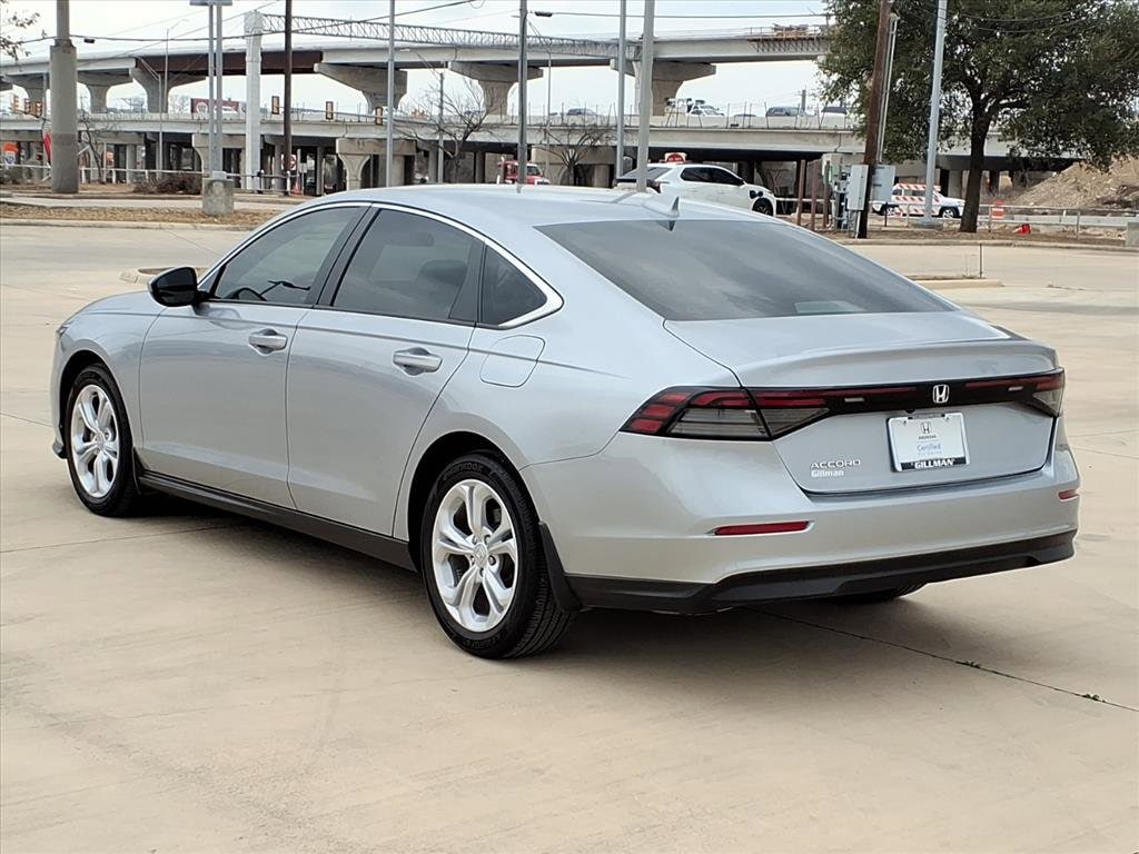 Gillman's Lifetime Engine Warranty lasts as long as you own your vehicle - free with the Gillman Pre-Owned Promise. If the vehicle isn't right for you, return it in purchase condition within 2 days or 200 miles as part of our Happy-Driving Guarantee. (Valid on vehicles under 90,000 miles and less than 7 years old). Experience comfort, style, and advanced technology with this Silver 2023 Honda Accord LX 4dr Sedan. Powered by a fuel-efficient 1.5L Turbo I4 engine and smooth CVT transmission, this Accord offers a refined drive with front-wheel drive for confident handling. Stay connected with Apple CarPlay and Android Auto smartphone integration, plus Bluetooth wireless data link and a 7-inch infotainment screen. Safety is paramount with features like Front Automatic Emergency Braking, Lane Keeping Assist, Adaptive Cruise Control, and Pedestrian Detection Pre-collision Warning. Enjoy convenience with push-button start, remote engine start, automatic climate control, and a customizable 10.2-inch digital instrument cluster. The multi-view rear camera system and HondaLink smart device app compatibility provide added peace of mind. Modern touches like LED headlights, auto high beam dimmer, and stylish chrome window trim complete the package. Don't miss your chance to own a reliable, tech-savvy Accord that's perfect for everyday driving. All vehicles subject to prior sale. We are not responsible for typographical errors and may change information without notice. Photos may not depict the actual vehicle. Tax, title, and license fees not included. Dealer Discount available to all buyers.Vehicles purchased from Gillman Automotive Group include a Bring It Back Guarantee: return the vehicle in purchase condition within two days or 200 miles. New current-model-year vehicles and qualifying pre-owned vehicles (under 90,000 miles and less than 7 years old) are eligible. Guarantee is non-transferable and has no cash value. Lifetime Warranty available on select pre-owned vehicles. See dealer for details; restrictions may apply.Certified Pre-Owned