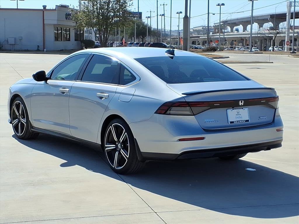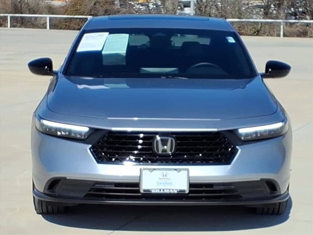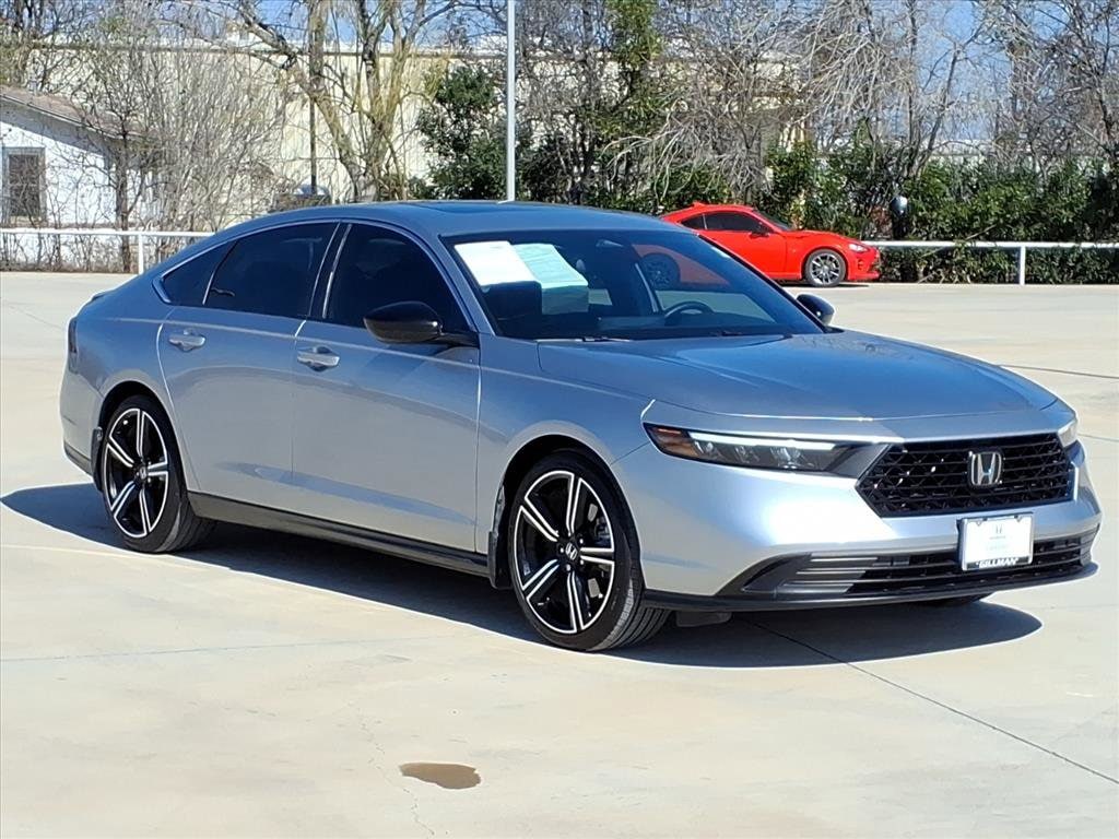 Gillman's Lifetime Engine Warranty lasts as long as you own your vehicle - free with the Gillman Pre-Owned Promise. If the vehicle isn't right for you, return it in purchase condition within 2 days or 200 miles as part of our Happy-Driving Guarantee. (Valid on vehicles under 90,000 miles and less than 7 years old). Experience the perfect blend of performance and efficiency with this Silver 2023 Honda Accord Hybrid Sport. Powered by a 2.0L Hybrid I4 engine delivering 204hp, this sedan offers an impressive drive while helping you save at the pump. Enjoy advanced technology including a 12.3-inch infotainment touchscreen with wireless Apple CarPlay and Android Auto, Amazon Alexa compatibility, and HondaLink smart device integration. Safety is a priority with adaptive cruise control, lane keeping assist, front automatic emergency braking, pedestrian detection, rear cross traffic alert, and blind spot monitoring. Comfort is elevated with dual-zone automatic climate control, a power moonroof, 12-way power driver's seat with lumbar support, and a leather-wrapped steering wheel. Additional features like remote engine start, push-button start, LED headlights, and a multi-angle rearview camera make every drive convenient and enjoyable. Stylish details, including a decklid rear spoiler and chrome window trim, complete the sporty look. Don't miss your chance to own this well-equipped, reliable, and stylish Accord Hybrid Sport-schedule your test drive today! All vehicles subject to prior sale. We are not responsible for typographical errors and may change information without notice. Photos may not depict the actual vehicle. Tax, title, and license fees not included. Dealer Discount available to all buyers.Vehicles purchased from Gillman Automotive Group include a Bring It Back Guarantee: return the vehicle in purchase condition within two days or 200 miles. New current-model-year vehicles and qualifying pre-owned vehicles (under 90,000 miles and less than 7 years old) are eligible. Guarantee is non-transferable and has no cash value. Lifetime Warranty available on select pre-owned vehicles. See dealer for details; restrictions may apply.Certified Pre-Owned
