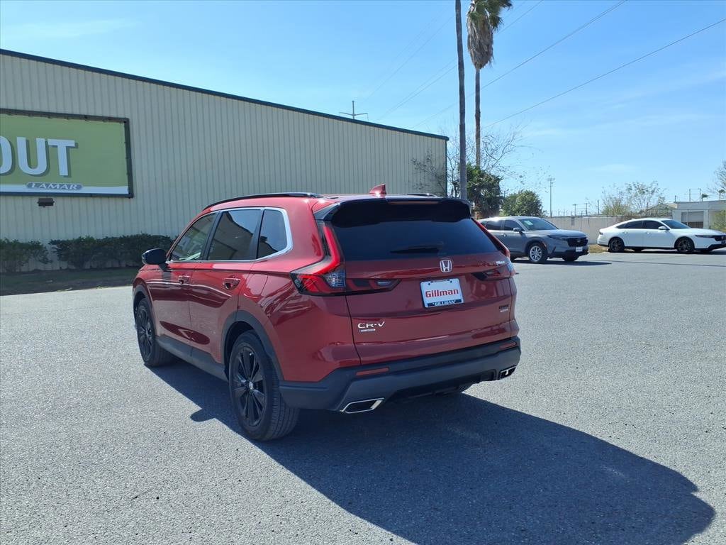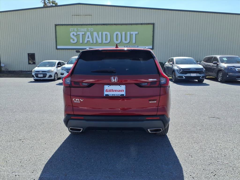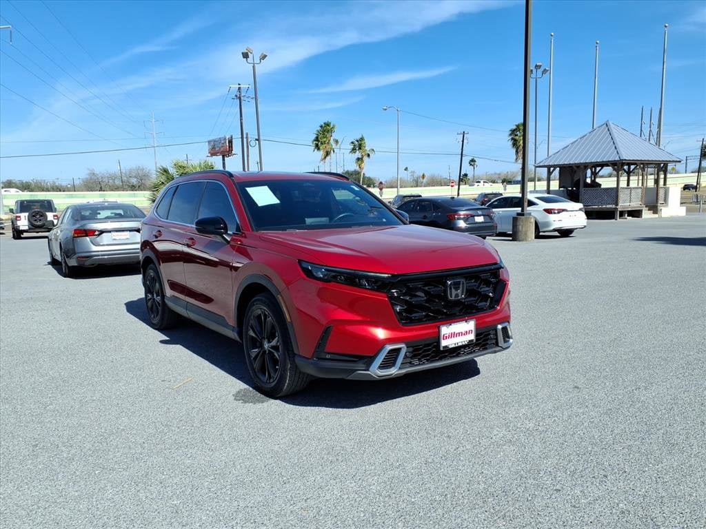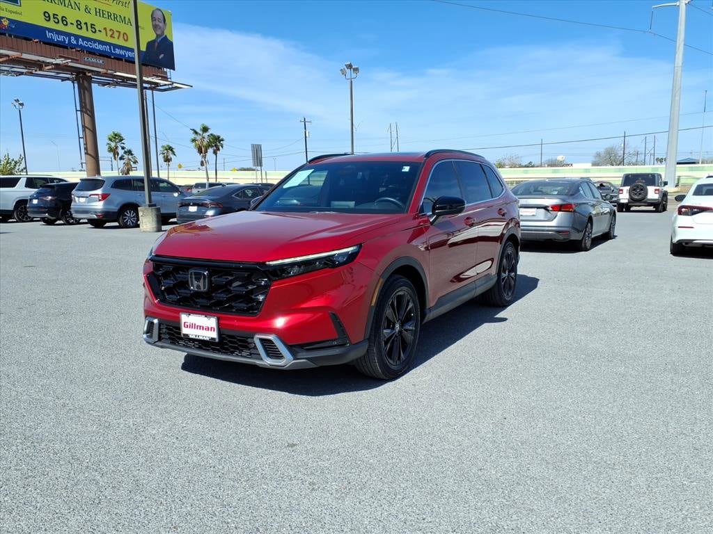 Gillman's Lifetime Engine Warranty lasts as long as you own your vehicle - free with the Gillman Pre-Owned Promise. If the vehicle isn't right for you, return it in purchase condition within 2 days or 200 miles as part of our Happy-Driving Guarantee. Experience the perfect blend of efficiency, technology, and versatility with this dark red 2023 Honda CR-V Hybrid AWD Sport Touring SUV. Powered by a responsive 2.0L Hybrid I4 engine paired with all-wheel drive and a 1-speed direct-drive automatic, this CR-V delivers smooth performance and impressive fuel economy. Enjoy advanced features like wireless Apple CarPlay and Android Auto, Amazon Alexa compatibility, and a 9-inch infotainment touchscreen. Stay secure with front and rear automatic emergency braking, lane centering guidance, adaptive cruise control, blind spot monitoring, and rear cross traffic alert. Premium touches include leather-trimmed upholstery, heated front seats and steering wheel, panoramic moonroof, Bose premium audio, and hands-free power liftgate. With real-time navigation, wireless charging, and HondaLink smart device integration, every drive is elevated. Ready for your next adventure, this CR-V Hybrid combines comfort, safety, and cutting-edge tech in one standout package. All vehicles subject to prior sale. We are not responsible for typographical errors and may change information without notice. Photos may not depict the actual vehicle. Tax, title, and license fees not included. Dealer Discount available to all buyers.Vehicles purchased from Gillman Automotive Group include a Bring It Back Guarantee: return the vehicle in purchase condition within two days or 200 miles. New current-model-year vehicles and qualifying pre-owned vehicles (under 90,000 miles and less than 7 years old) are eligible. Guarantee is non-transferable and has no cash value. Lifetime Warranty available on select pre-owned vehicles. See dealer for details; restrictions may apply.Certified Pre-Owned