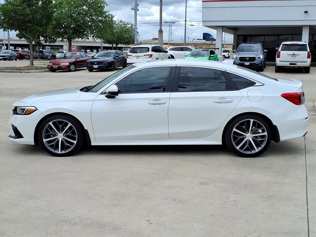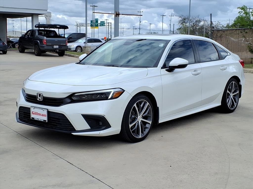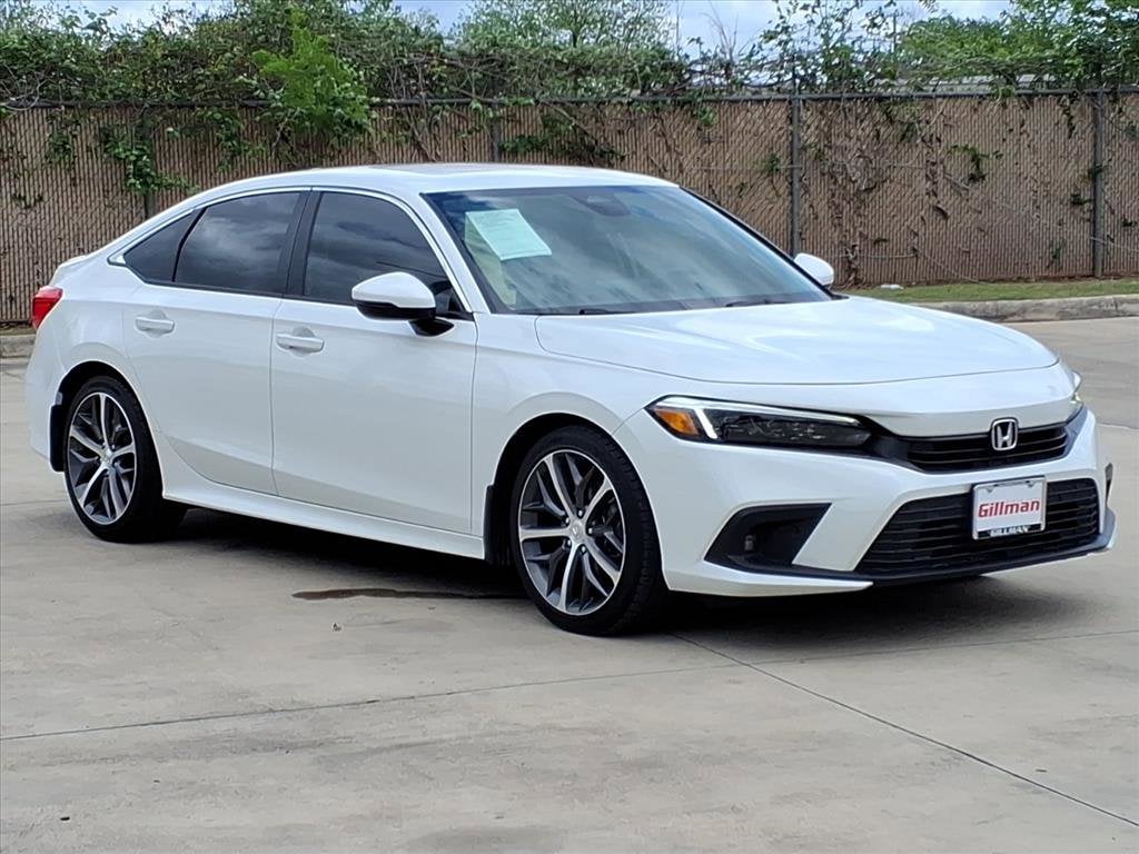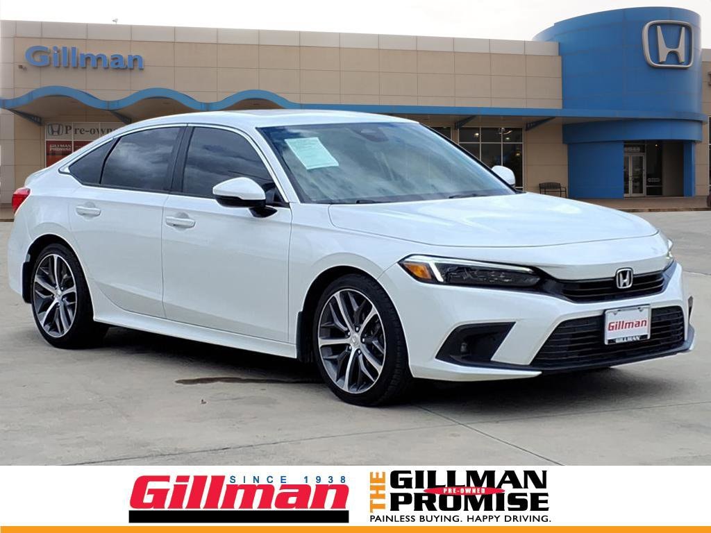 Gillman's Lifetime Engine Warranty lasts as long as you own your vehicle - free with the Gillman Pre-Owned Promise. If the vehicle isn't right for you, return it in purchase condition within 2 days or 200 miles as part of our Happy-Driving Guarantee. (Valid on vehicles under 90,000 miles and less than 7 years old). Experience premium comfort and advanced technology with this white 2023 Honda Civic Touring Sedan. Powered by a fuel-efficient 1.5L Turbo I4 engine paired with a smooth 7-speed shiftable CVT, this Civic delivers both performance and reliability. Enjoy leather-trimmed upholstery, heated front seats, and a power moonroof for an upscale driving experience. The Touring trim is loaded with features such as wireless Apple CarPlay and Android Auto, Bose premium audio with 11 speakers, a 9-inch touchscreen infotainment system, built-in navigation, and a customizable 10.2-inch digital instrument cluster. Safety is paramount with Honda Sensing technology, including adaptive cruise control, lane keeping assist, blind spot monitoring, rear cross traffic alert, front and rear automatic emergency braking, and pedestrian detection. Additional highlights include remote engine start, rain-sensing wipers, LED headlights and fog lights, front/rear parking sensors, and a wireless charging pad. If you're looking for a stylish, comfortable, and well-equipped sedan, this Civic Touring is ready for your next adventure. All vehicles subject to prior sale. We are not responsible for typographical errors and may change information without notice. Photos may not depict the actual vehicle. Tax, title, and license fees not included. Dealer Discount available to all buyers.Vehicles purchased from Gillman Automotive Group include a Bring It Back Guarantee: return the vehicle in purchase condition within two days or 200 miles. New current-model-year vehicles and qualifying pre-owned vehicles (under 90,000 miles and less than 7 years old) are eligible. Guarantee is non-transferable and has no cash value. Lifetime Warranty available on select pre-owned vehicles. See dealer for details; restrictions may apply.Certified Pre-Owned