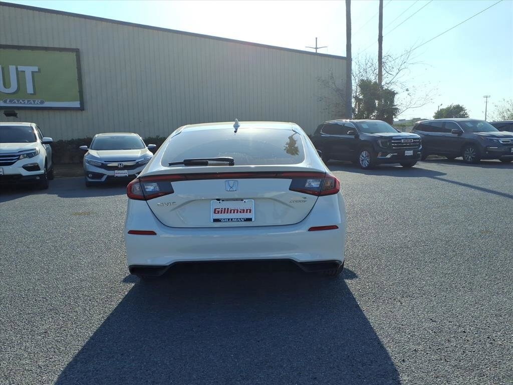 Gillman's Lifetime Engine Warranty lasts as long as you own your vehicle - free with the Gillman Pre-Owned Promise. If the vehicle isn't right for you, return it in purchase condition within 2 days or 200 miles as part of our Happy-Driving Guarantee. Drive in style and confidence with this White 2024 Honda Civic Sport Hatchback! Enjoy a sporty exterior featuring a rear spoiler, LED headlights, and sleek alloy wheels. Inside, stay connected and entertained with a 7-inch touchscreen, Apple CarPlay and Android Auto, Bluetooth, and HondaLink smart device compatibility. Safety comes first with advanced features like Automatic Emergency Braking, Pedestrian Detection, Lane Keeping Assist, Adaptive Cruise Control, and a rearview camera. The Civic's spacious hatchback design ensures ample cargo room, while the fuel-efficient 2.0L I4 engine and smooth CVT make every commute enjoyable. Experience comfort with automatic climate control, a leather-wrapped steering wheel, and customizable digital displays. Don't miss out-this Civic Sport blends modern tech, top safety, and sporty performance, making it an ideal choice for your next ride! All vehicles subject to prior sale. We are not responsible for typographical errors and may change information without notice. Photos may not depict the actual vehicle. Tax, title, and license fees not included. Dealer Discount available to all buyers.Vehicles purchased from Gillman Automotive Group include a Bring It Back Guarantee: return the vehicle in purchase condition within two days or 200 miles. New current-model-year vehicles and qualifying pre-owned vehicles (under 90,000 miles and less than 7 years old) are eligible. Guarantee is non-transferable and has no cash value. Lifetime Warranty available on select pre-owned vehicles. See dealer for details; restrictions may apply.Certified Pre-Owned