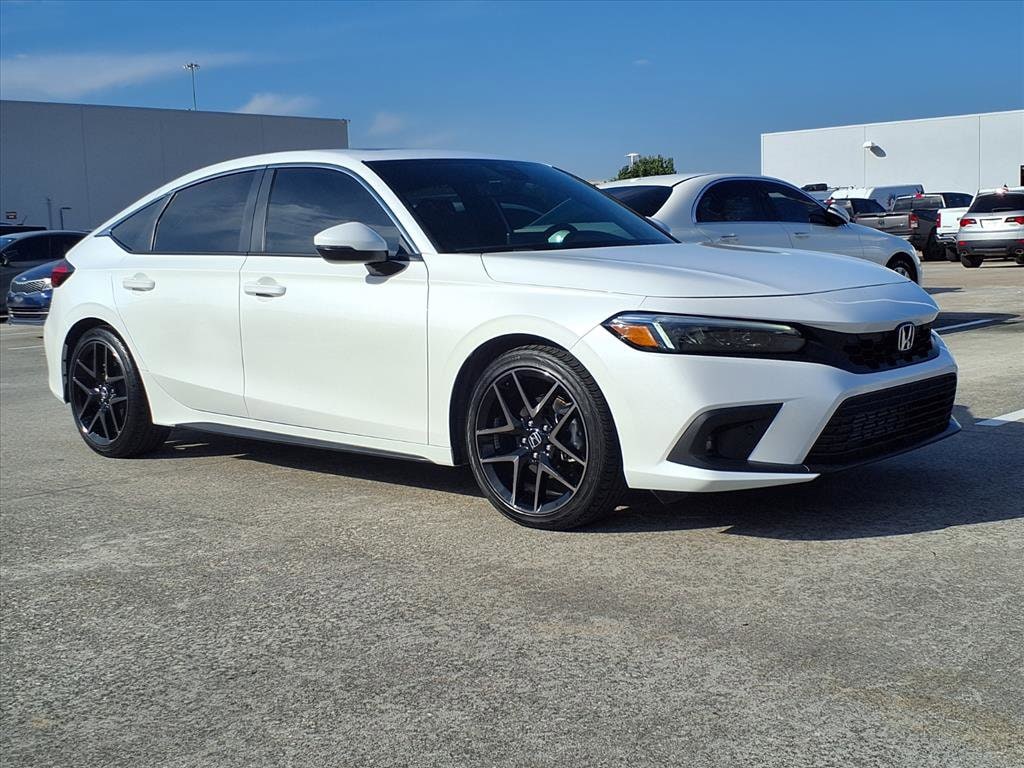 Certified. White 2024 Honda Civic Sport Touring FWD 6-Speed Manual 1.5L I4 DOHC 16V Black Leather.