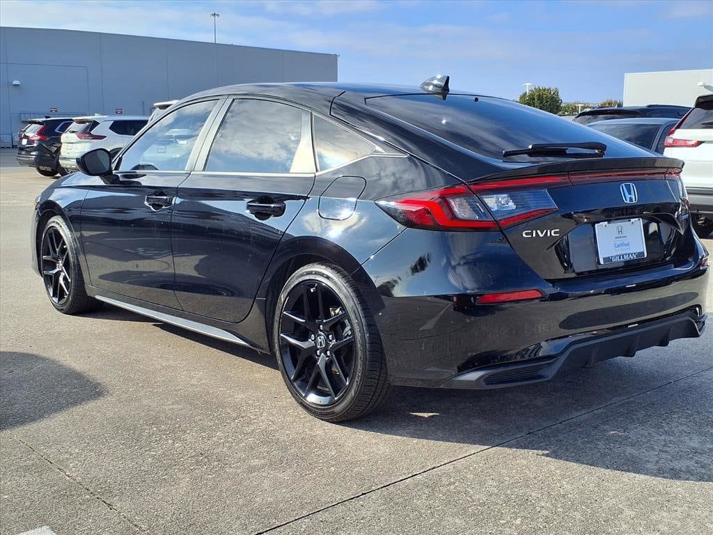 Gillman's Lifetime Engine Warranty lasts as long as you own your vehicle - free with the Gillman Pre-Owned Promise. If the vehicle isn't right for you, return it in purchase condition within 2 days or 200 miles as part of our Happy-Driving Guarantee. (Valid on vehicles under 90,000 miles and less than 7 years old). Experience the perfect blend of style, versatility, and advanced technology with this Black 2024 Honda Civic Sport Hatchback. Featuring a sporty design with a decklid rear spoiler, LED headlights, and 17-inch alloy wheels, this Civic stands out from the crowd. Enjoy seamless connectivity with Apple CarPlay, Android Auto, Bluetooth, and HondaLink, all accessed through a 7-inch touchscreen display. Stay safe and confident with cutting-edge driver assistance features including adaptive cruise control, lane keeping assist, front automatic emergency braking with pedestrian detection, and a rear multi-view camera. The spacious interior offers split-folding rear seats, customizable digital instrument cluster, and premium touches like a leather-wrapped steering wheel and aluminum pedal trim. With remote engine start, push-button start, and automatic climate control, every drive is convenient and comfortable. Powered by a responsive 2.0L I4 engine paired with a smooth CVT, this Civic delivers efficiency without sacrificing fun. If you're seeking reliability, modern features, and sporty flair, this 2024 Honda Civic Sport Hatchback is ready for you. Contact us today to schedule your test drive! All vehicles subject to prior sale. We are not responsible for typographical errors and may change information without notice. Photos may not depict the actual vehicle. Tax, title, and license fees not included. Dealer Discount available to all buyers.Vehicles purchased from Gillman Automotive Group include a Bring It Back Guarantee: return the vehicle in purchase condition within two days or 200 miles. New current-model-year vehicles and qualifying pre-owned vehicles (under 90,000 miles and less than 7 years old) are eligible. Guarantee is non-transferable and has no cash value. Lifetime Warranty available on select pre-owned vehicles. See dealer for details; restrictions may apply.Certified Pre-Owned