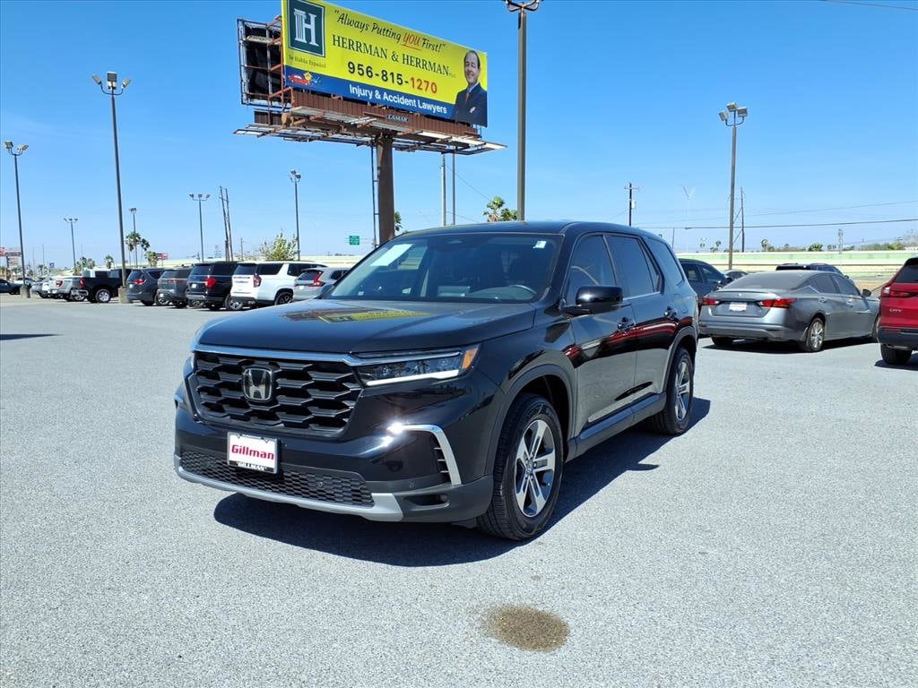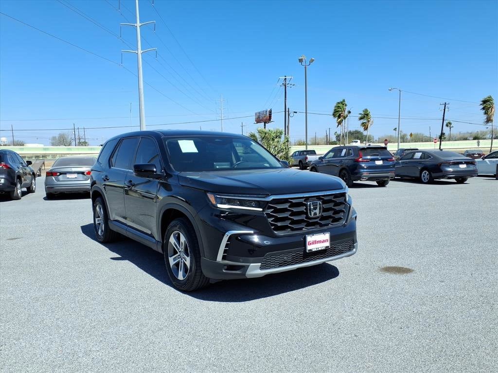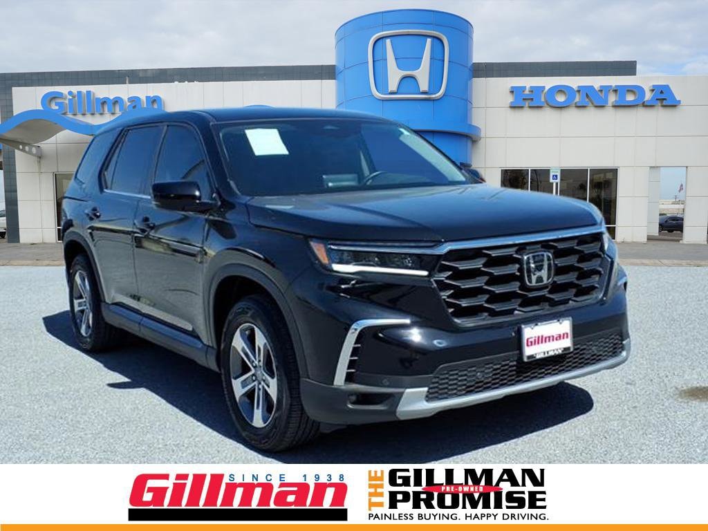 Gillman's Lifetime Engine Warranty lasts as long as you own your vehicle - free with the Gillman Pre-Owned Promise. If the vehicle isn't right for you, return it in purchase condition within 2 days or 200 miles as part of our Happy-Driving Guarantee. Experience the versatile and reliable 2025 Honda Pilot EX-L, finished in stunning black. This spacious 3-row SUV comes equipped with luxurious leather-trimmed upholstery, power-operated rear liftgate, and heated front seats for ultimate comfort. Stay seamlessly connected with wireless Apple CarPlay and Android Auto, while the 9-inch infotainment touchscreen and HondaLink keep you in control. Advanced driver-assist features include adaptive cruise control, lane keeping assist, blind spot monitoring, rear cross traffic alert, and a multi-view rear camera for enhanced peace of mind. The powerful 3.5L V6 engine pairs with a smooth 10-speed automatic transmission for an engaging drive. Enjoy the convenience of remote engine start, push-button start, and a power-adjustable driver's seat with memory. The Pilot EX-L also features tri-zone automatic climate control, rear sunshades, and ample cargo space with flat-folding rear seats-perfect for family adventures or daily commutes. All vehicles subject to prior sale. We are not responsible for typographical errors and may change information without notice. Photos may not depict the actual vehicle. Tax, title, and license fees not included. Dealer Discount available to all buyers.Vehicles purchased from Gillman Automotive Group include a Bring It Back Guarantee: return the vehicle in purchase condition within two days or 200 miles. New current-model-year vehicles and qualifying pre-owned vehicles (under 90,000 miles and less than 7 years old) are eligible. Guarantee is non-transferable and has no cash value. Lifetime Warranty available on select pre-owned vehicles. See dealer for details; restrictions may apply.Certified Pre-Owned