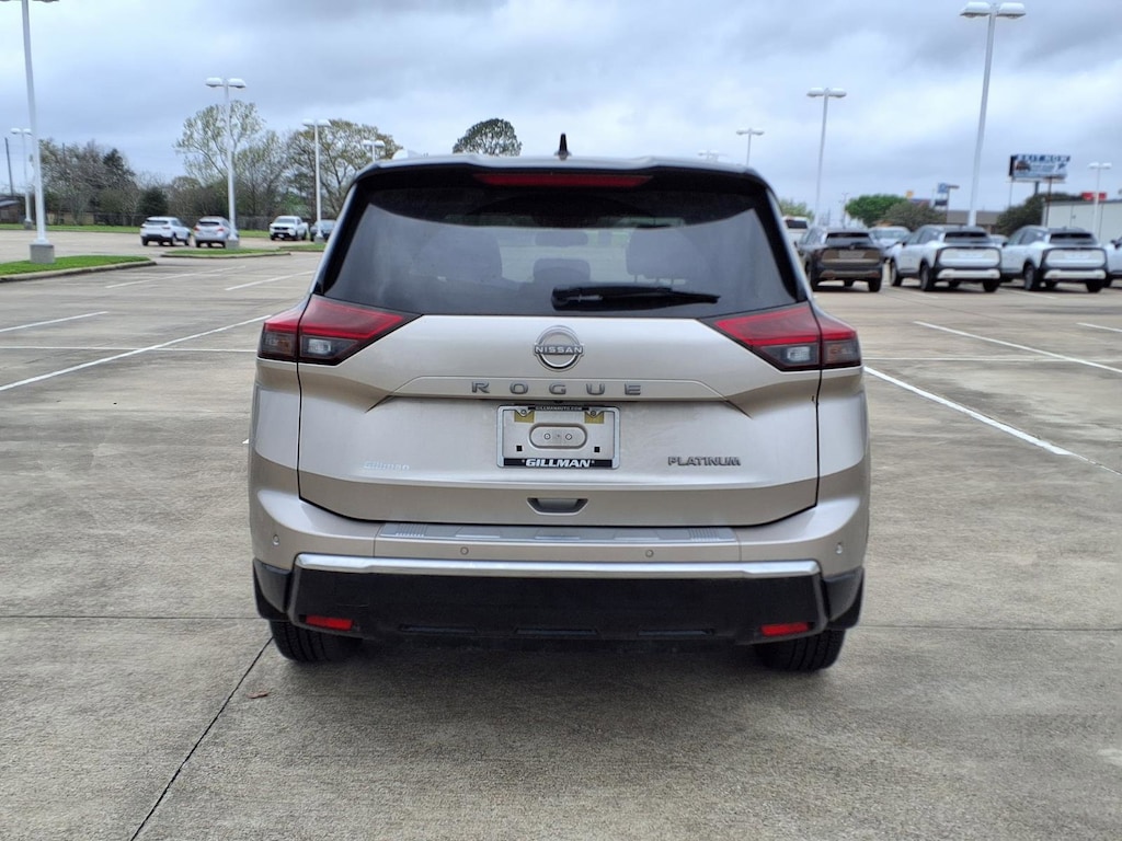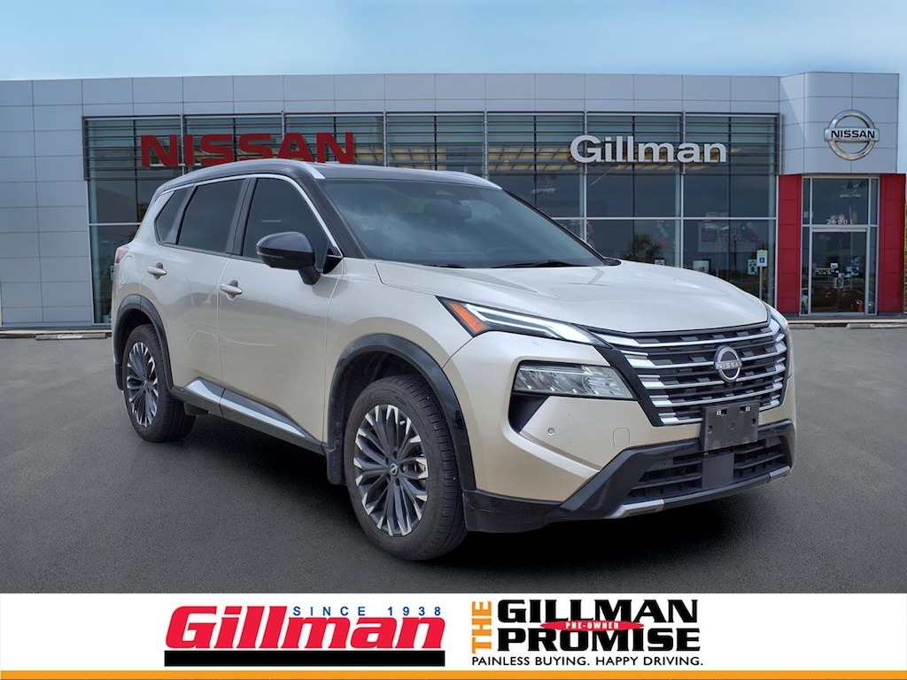 Gillman's Lifetime Engine Warranty lasts as long as you own your vehicle - free with the Gillman Pre-Owned Promise. If the vehicle isn't right for you, return it in purchase condition within 2 days or 200 miles as part of our Happy-Driving Guarantee. Experience luxury and advanced technology in the 2024 Nissan Rogue Platinum, finished in stunning Silver. This top-tier crossover offers a sophisticated drive with semi-aniline leather upholstery, a panoramic moonroof, and a premium Bose sound system. Stay connected with Google Built-In Infotainment, wireless Apple CarPlay and Android Auto, plus a 12.3-inch touchscreen and customizable instrument cluster. Safety is at the forefront with a surround view camera, adaptive cruise control, lane keeping assist with blind spot integration, rear cross traffic alert, and multiple pre-collision warning systems. Enjoy added convenience with remote engine start, heated seats, heated steering wheel, wireless charging, and hands-free smart device app compatibility. The Rogue Platinum blends performance, comfort, and the latest tech for a truly elevated driving experience. All vehicles subject to prior sale. We are not responsible for typographical errors and may change information without notice. Photos may not depict the actual vehicle. Tax, title, and license fees not included. Dealer Discount available to all buyers.Vehicles purchased from Gillman Automotive Group include a Bring It Back Guarantee: return the vehicle in purchase condition within two days or 200 miles. New current-model-year vehicles and qualifying pre-owned vehicles (under 90,000 miles and less than 7 years old) are eligible. Guarantee is non-transferable and has no cash value. Lifetime Warranty available on select pre-owned vehicles. See dealer for details; restrictions may apply.Certified Pre-Owned