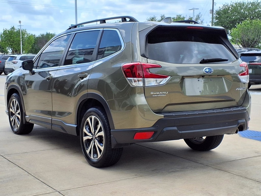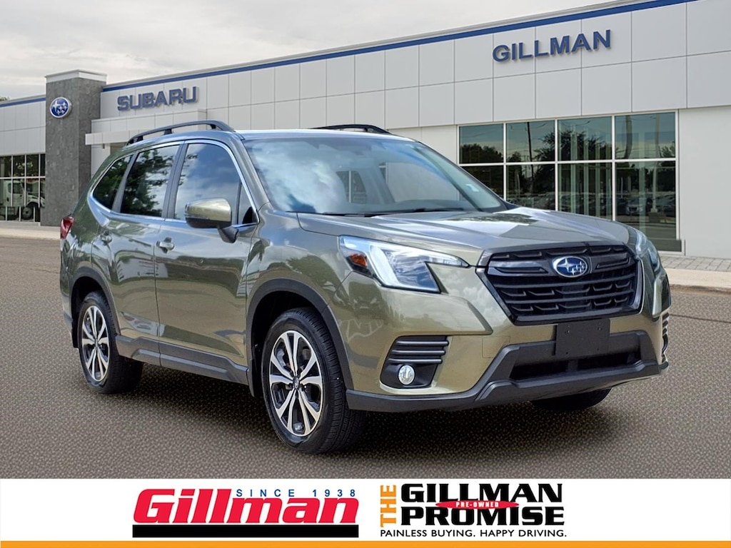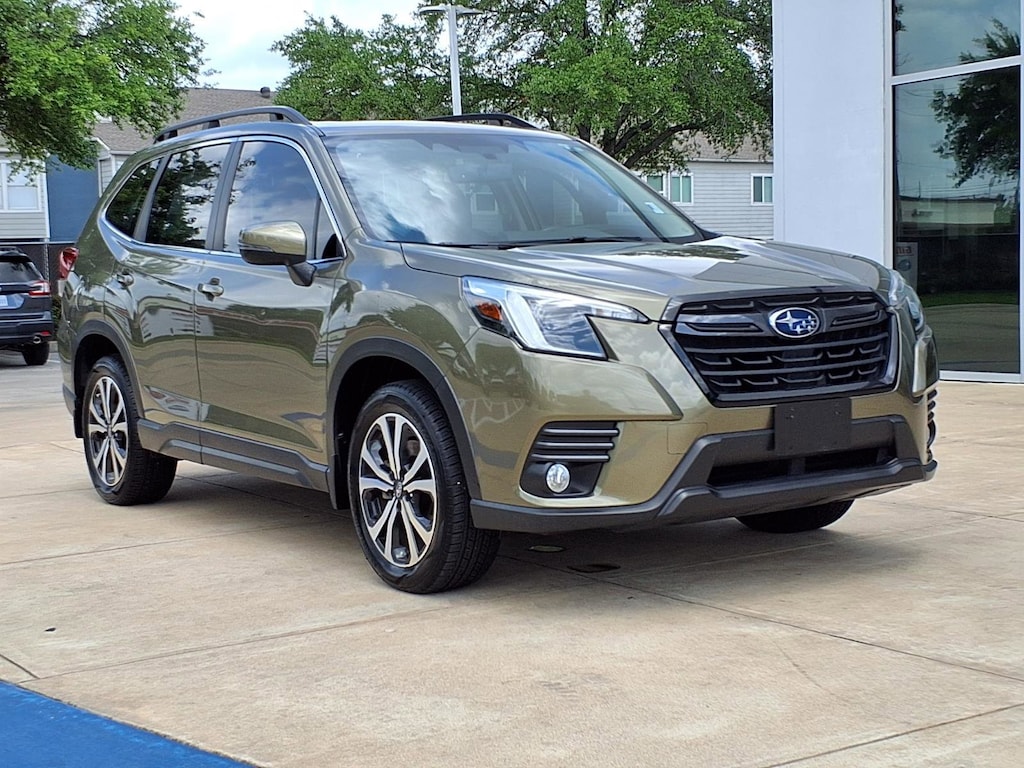 Experience adventure in style with this eye-catching green 2023 Subaru Forester AWD Limited! Designed for all road conditions, it features Subaru's renowned Symmetrical All-Wheel Drive and a fuel-efficient 2.5L engine paired with a smooth 7-speed shiftable CVT. Enjoy advanced safety with Front Automatic Emergency Braking, Lane Keeping Assist, Blind Spot Detection, and Rear Cross Traffic Alert. The Limited trim pampers you with leather-trimmed upholstery, heated front seats, a panoramic power moonroof, and power liftgate. Stay connected with an 8-inch STARLINK infotainment system offering Apple CarPlay, Android Auto, navigation, and Harman Kardon premium sound. Utility abounds with roof rails, a rubber/vinyl cargo mat, and split-folding rear seats for extra cargo space. Additional highlights include adaptive cruise control, push-button start, LED headlights/fog lights, and multiple smart device integration options. Ready for your next journey-see it today!