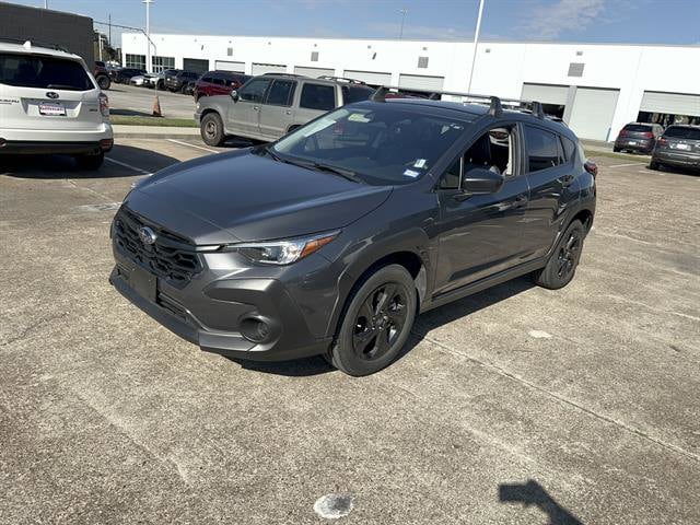 Experience the versatility and reliability of the 2024 Subaru Crosstrek AWD Base in stylish gray. This crossover is equipped with Subaru's renowned full-time all-wheel drive, a fuel-efficient 2.0L H4 engine, and a smooth CVT transmission, making it perfect for both city commutes and weekend adventures. Enjoy peace of mind with advanced safety features including front automatic emergency braking, pedestrian detection, lane keeping assist, rearview camera, and adaptive cruise control. Stay connected and entertained with a 7-inch dual infotainment screen, Apple CarPlay, Android Auto, STARLINK infotainment, Bluetooth wireless data link, and multiple USB power outlets. Comfort is at your fingertips with automatic climate control, height-adjustable driver seat, split-folding rear seats, and ample cargo space. The Crosstrek also features LED headlights, alloy wheels, and a modern interior designed for both functionality and style. Visit us today and see why the Crosstrek is one of Subaru's most popular models for active lifestyles.