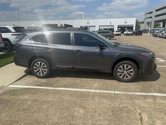 Explore new adventures in this low-mileage 2025 Subaru Outback Premium AWD Crossover with just 1,049 miles! Finished in sleek gray, this Outback is ready for any road with its reliable AWD system and smooth 8-speed shiftable CVT. Enjoy comfort and convenience with heated front seats, power driver's seat with lumbar support, and automatic climate control. Stay connected on every journey with a massive 11.6-inch STARLINK touchscreen, wireless Apple CarPlay and Android Auto, and hotspot-compatible Wi-Fi. Safety is top priority thanks to advanced features like adaptive cruise control, lane centering, automatic emergency braking (including pedestrian detection), lane keeping assist, rearview camera with washer, and more. Practical touches like black roof rails, rubber/vinyl cargo floor mat, rear folding seats, and ample storage make it perfect for active lifestyles. Don't miss this nearly new Outback-schedule your test drive today!