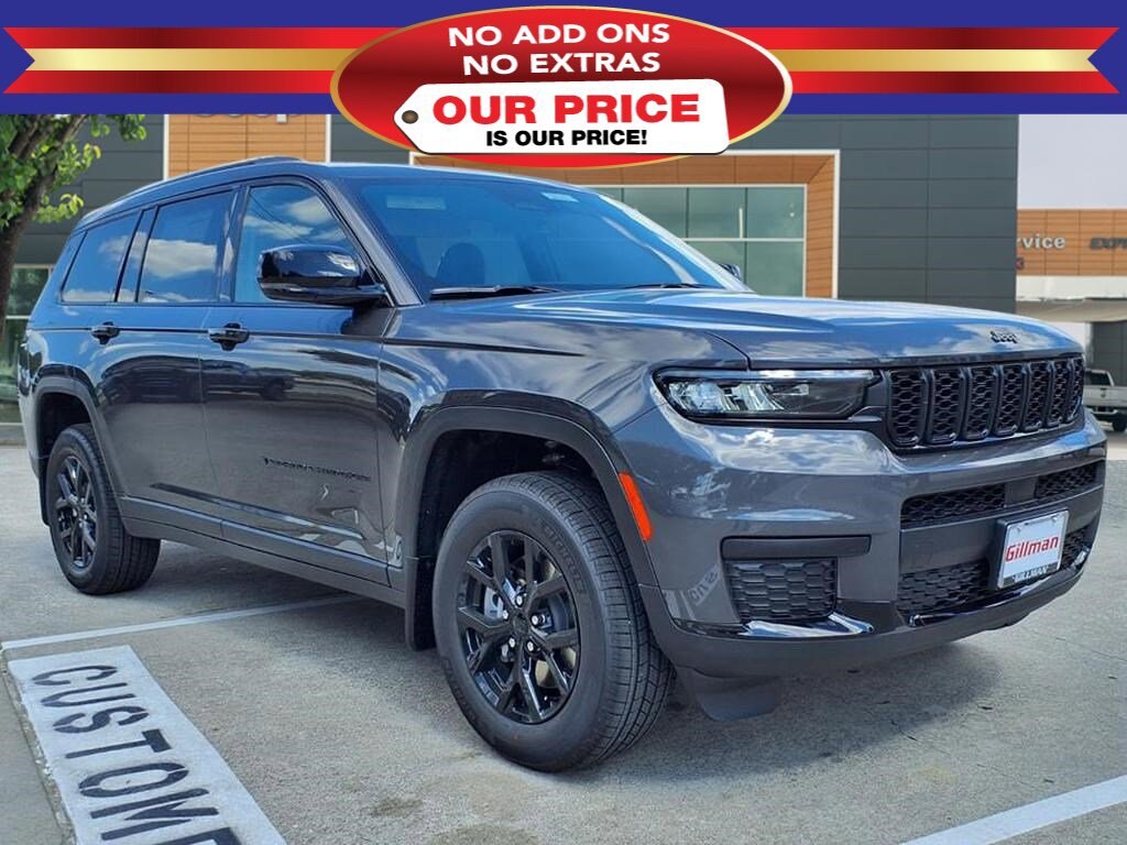 Gillman Chrysler Jeep Dodge Ram is pumped up to offer this superb 2025 Jeep Grand Cherokee L Altitude X in Baltic Gray Metallic Clearcoat with Global Black interior. Well equipped with MOPAR Finishing Package (MOPAR Front Splash Guards, MOPAR Paint Protection Film, and MOPAR Rear Splash Guards w/Jeep Logo), Quick Order Package 23M Altitude X (115V Auxiliary Power Outlet, 3rd Row Charge-Only USB Ports, Altitude X, Black Headliner, Capri Leatherette/Suede Seats, Delete Laredo Badge, Gloss Black Exterior Accents, Heated Front Seats, Heated Steering Wheel, Power Liftgate, Power Sunroof, Rain Sensitive Windshield Wipers, Remote Start System, Selectable Tire Fill Alert, Wheels: 18" x 8.0" Fully Painted Aluminum 1, and Wireless Charging Pad), 3.45 Rear Axle Ratio, 3rd row seats: split-bench, 4-Wheel Disc Brakes, 6 Speakers, ABS brakes, Air Conditioning, Alloy wheels, AM/FM radio: SiriusXM, Anti-whiplash front head restraints, Automatic temperature control, Brake assist, Bumpers: body-color, Cloth Seats, Compass, Delay-off headlights, Driver door bin, Driver vanity mirror, Dual front impact airbags, Dual front side impact airbags, Electronic Stability Control, Emergency communication system, Four wheel independent suspension, Front anti-roll bar, Front Bucket Seats, Front Center Armrest w/Storage, Front dual zone A/C, Front License Plate Bracket, Front reading lights, Fully automatic headlights, Heated door mirrors, Illuminated entry, Knee airbag, Low tire pressure warning, Manual Fold Seatbacks, Model Year Tracking, Normal Duty Suspension, Occupant sensing airbag, Outside temperature display, Overhead airbag, Overhead console, Panic alarm, ParkView Rear Back-Up Camera, Passenger door bin, Passenger vanity mirror, Power door mirrors, Power driver seat, Power steering, Power windows, Radio data system, Radio: Uconnect 5 w/8.4" Display, Rear air conditioning, Rear anti-roll bar, Rear reading lights, Rear window defroster, Rear window wiper, Reclining 3rd row seat, Remote keyless entry, Security system, Speed control, Speed-Sensitive Wipers, Split folding rear seat, Spoiler, Steering wheel mounted audio controls, Tachometer, Telescoping steering wheel, Tilt steering wheel, Traction control, Trip computer, Variably intermittent wipers, Voltmeter, and Wheels: 18" x 8.0" Fully Painted Aluminum.