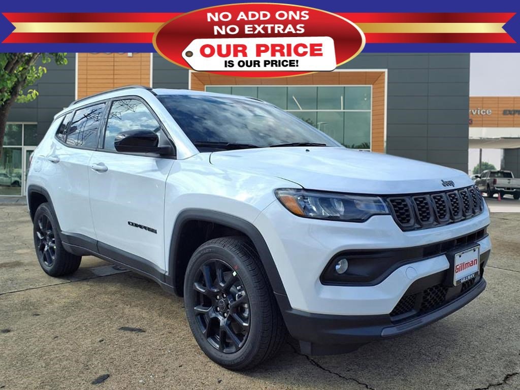 Gillman Chrysler Jeep Dodge Ram is honored to offer this attractive 2026 Jeep Compass Latitude in Bright White Clearcoat with Black interior. Well equipped with Quick Order Package 29N Altitude (10.1" Touchscreen Display, Altitude Special Edition, Black Day Light Opening Moldings, Gloss Black Surround/Neutral Gray Rings, Neutral Gray Exterior Badging, Piano Black Interior Accents, Sliding Sun Visors with Illuminated Mirrors, and Wheels: 18" x 7" Gloss Black Painted Aluminum), 17" x 7" Aluminum Wheels, 3.73 Final Drive Ratio, 4-Wheel Disc Brakes, 4G LTE Wi-Fi Hot Spot, 6 Speakers, ABS brakes, Air Conditioning, AM/FM radio: SiriusXM, Auto High-beam Headlights, Automatic temperature control, Bluetooth Handsfree Phone and Audio, Brake assist, Bumpers: body-color, Compass, Delay-off headlights, Driver door bin, Driver vanity mirror, Dual front impact airbags, Dual front side impact airbags, Electronic Stability Control, Emergency communication system: SiriusXM Guardian, Four wheel independent suspension, Front anti-roll bar, Front Bucket Seats, Front Center Armrest w/Storage, Front fog lights, Front License Plate Bracket, Front reading lights, Fully automatic headlights, Global Telematics Box Module, Heated door mirrors, Heated front seats, Heated steering wheel, Illuminated entry, Knee airbag, Leather Shift Knob, Leather steering wheel, Low tire pressure warning, Occupant sensing airbag, Outside temperature display, Overhead airbag, Overhead console, Panic alarm, ParkView Rear Back-Up Camera, Passenger door bin, Passenger vanity mirror, Power door mirrors, Power steering, Power windows, Premium audio system: UConnect 5, Premium Cloth/Vinyl Bucket Seats, Radio: Uconnect 5 with 8.4" Display, Rear anti-roll bar, Rear seat center armrest, Rear window defroster, Rear window wiper, Remote keyless entry, Security system, SiriusXM Satellite Radio, Speed control, Split folding rear seat, Spoiler, Steering wheel mounted audio controls, Tachometer, Telescoping steering wheel, Tilt steering wheel, Traction control, Trip computer, and Variably intermittent wipers.