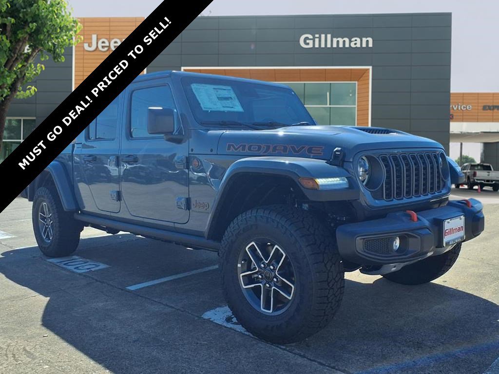 Gillman Chrysler Jeep Dodge Ram is pumped up to offer this gorgeous-looking 2025 Jeep Gladiator Mojave in Anvil Clearcoat with Black interior. Well equipped with Convenience Group (Heated Front Seats, Heated Steering Wheel, Remote Start System, SiriusXM Radio Service, SiriusXM w/360L, and Universal Garage Door Opener), Quick Order Package 24D Mojave, 12.3" Touchscreen Display, 4-Wheel Disc Brakes, 4.10 Rear Axle Ratio, 4G LTE Wi-Fi Hot Spot, 8 Speakers, 97 MPH Vehicle Max Speed Calibration, ABS brakes, Air Conditioning, Alexa Built-In, Alloy wheels, AM/FM radio: SiriusXM, Apple CarPlay, Apple CarPlay/Android Auto, Automatic temperature control, Body Color 3-Piece Hard Top, Body Color Rubicon Highline Flare, Brake assist, Compass, Connectivity - US/Canada, Delay-off headlights, Driver door bin, Driver vanity mirror, Dual front impact airbags, Dual front side impact airbags, Electronic Stability Control, Emergency communication system: Jeep Connect, Freedom Panel Storage Bag, Front anti-roll bar, Front Bucket Seats, Front Center Armrest w/Storage, Front dual zone A/C, Front fog lights, Front License Plate Bracket, Front reading lights, Fully automatic headlights, Google Android Auto, Heated door mirrors, Heavy Duty Suspension w/Gas Shocks, Illuminated entry, Integrated roll-over protection, Low tire pressure warning, MOPAR All-Weather Slush Mats, MOPAR Spray In Bedliner, No Soft Top, Occupant sensing airbag, Outside temperature display, Overhead airbag, Panic alarm, Passenger door bin, Passenger vanity mirror, Power door mirrors, Power steering, Power windows, Premium Cloth Seats w/Sport Bolsters, Radio data system, Radio: Uconnect 5 w/12.3" Display, Rear anti-roll bar, Rear reading lights, Rear Sliding Window, Rear Window Defroster, Remote keyless entry, Security system, Speed control, Split folding rear seat, Steering wheel mounted audio controls, Tachometer, Telescoping steering wheel, Tilt steering wheel, Traction control, Trip computer, USB Host Flip, Variably intermittent wipers, Voltmeter, and Wheels: 17" x 7.5" Dark Gray Painted.
