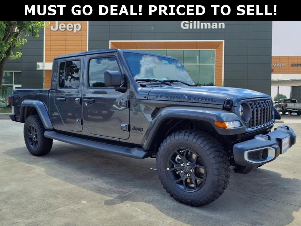 Gillman Chrysler Jeep Dodge Ram is honored to offer this stunning 2025 Jeep Gladiator Texas Trail in Granite Crystal Metallic Clearcoat with Black interior. Well equipped with ABS brakes, Compass, Electronic Stability Control, Illuminated entry, Low tire pressure warning, ParkView Rear Back-Up Camera, Remote keyless entry, Traction control, 110 MPH Vehicle Max Speed Calibration, 12.3" Touchscreen Display, 3.73 Rear Axle Ratio, 4-Wheel Disc Brakes, 4G LTE Wi-Fi Hot Spot, 8 Speakers, Air Conditioning, Alexa Built-In, AM/FM radio: SiriusXM, Apple CarPlay, Apple CarPlay/Android Auto, Brake assist, Cloth Low-Back Bucket Seats, Connectivity - US/Canada, Delay-off headlights, Driver door bin, Driver vanity mirror, Dual front impact airbags, Dual front side impact airbags, Front anti-roll bar, Front Bucket Seats, Front Center Armrest w/Storage, Front fog lights, Front reading lights, Google Android Auto, Integrated roll-over protection, Normal Duty Suspension, Occupant sensing airbag, Outside temperature display, Overhead airbag, Panic alarm, Passenger door bin, Passenger vanity mirror, Power steering, Power windows, Radio data system, Radio: Uconnect 5 w/12.3" Display, Rear anti-roll bar, Rear reading lights, Speed control, Split folding rear seat, Steering wheel mounted audio controls, Tachometer, Telescoping steering wheel, Tilt steering wheel, Trip computer, USB Host Flip, Variably intermittent wipers, Voltmeter, and Wheels: 17" x 7.5" Black Steel Styled.