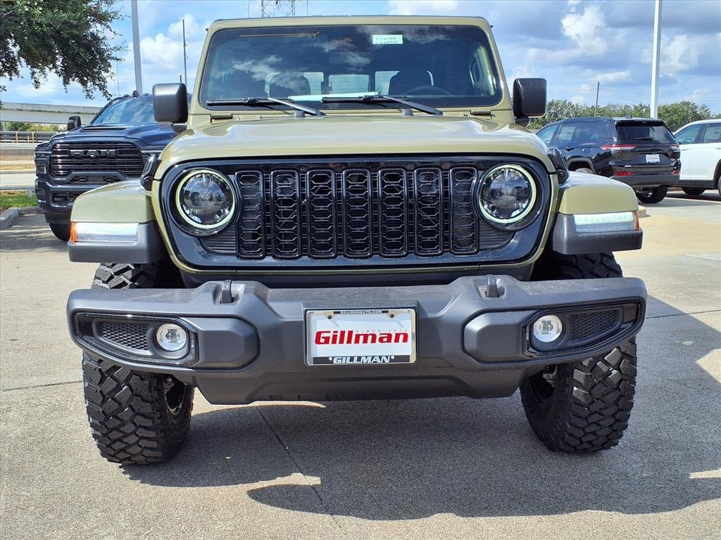 Gillman Chrysler Jeep Dodge Ram is delighted to offer this good-looking 2025 Jeep Gladiator Willys in 41 with Black interior. Well equipped with Convenience Group (Corning Gorilla Glass, Daytime Running Lamp System, Emergency/Assistance Call, Front Door Locks 2-Door Passive Entry, Heated Front Seats, Heated Steering Wheel, Remote Start System, and Universal Garage Door Opener), Quick Order Package 24W Willys (4-Wheel Drive Decal, Advanced Brake Assist, Air Conditioning w/Auto Temperature Control, Automatic Headlamps, Auxiliary Switches, Black Grille, Body Color Fender Flares (2-Piece), Class IV Receiver Hitch, Cluster 7.0" TFT Color Display, Daytime Running Lamps LED Accents, Deep Tint Sunscreen Windows, E-Locker Rear Axle, Enhanced Adaptive Cruise Control, Front Heavy Duty Red Accent Shock Absorbers, Front LED Fog Lamps, Full Speed Forward Collision Warning Plus, Heavy-Duty Engine Cooling, LED Premium Reflector Headlamps, LED Taillamps, Mold In Color Bumper w/Gloss Black, MOPAR All-Weather Slush Mats, Off-Road Plus Mode, Power Heated Mirrors, Premium Wrapped Steering Wheel, Protection Sill Rails, Rear Heavy Duty Red Accent Shock Absorbers, Security Alarm, Sun Visors w/Illuminated Vanity Mirrors, Trailer Hitch Zoom, Wheels: 17" x 7.5" Painted Black, Willys Hood Decal, and Willys Suspension), 110 MPH Vehicle Max Speed Calibration, 12.3" Touchscreen Display, 3.73 Rear Axle Ratio, 4-Wheel Disc Brakes, 4G LTE Wi-Fi Hot Spot, 8 Speakers, ABS brakes, Air Conditioning, Alexa Built-In, AM/FM radio: SiriusXM, Apple CarPlay, Apple CarPlay/Android Auto, Black 3-Piece Hard Top, Brake assist, Cloth Low-Back Bucket Seats, Compass, Connectivity - US/Canada, Delay-off headlights, Driver door bin, Driver vanity mirror, Dual front impact airbags, Dual front side impact airbags, Electronic Stability Control, Freedom Panel Storage Bag, Front anti-roll bar, Front Bucket Seats, Front Center Armrest w/Storage, Front fog lights, Front License Plate Bracket, Front reading lights, Google Android Auto, Illuminated entry, Integrated roll-over protection, Low tire pressure warning, Normal Duty Suspension, Occupant sensing airbag, Outside temperature display, Overhead airbag, Panic alarm, ParkView Rear Back-Up Camera, Passenger door bin, Passenger vanity mirror, Power steering, Power windows, Radio data system, Radio: Uconnect 5 w/12.3" Display, Rear anti-roll bar, Rear reading lights, Rear Sliding Window, Rear Window Defroster, Remote keyless entry, Speed control, Split folding rear seat, Steering wheel mounted audio controls, Tachometer, Telescoping steering wheel, Tilt steering wheel, Traction control, Trip computer, USB Host Flip, Variably intermittent wipers, Voltmeter, and Wheels: 17" x 7.5" Black Steel Styled.