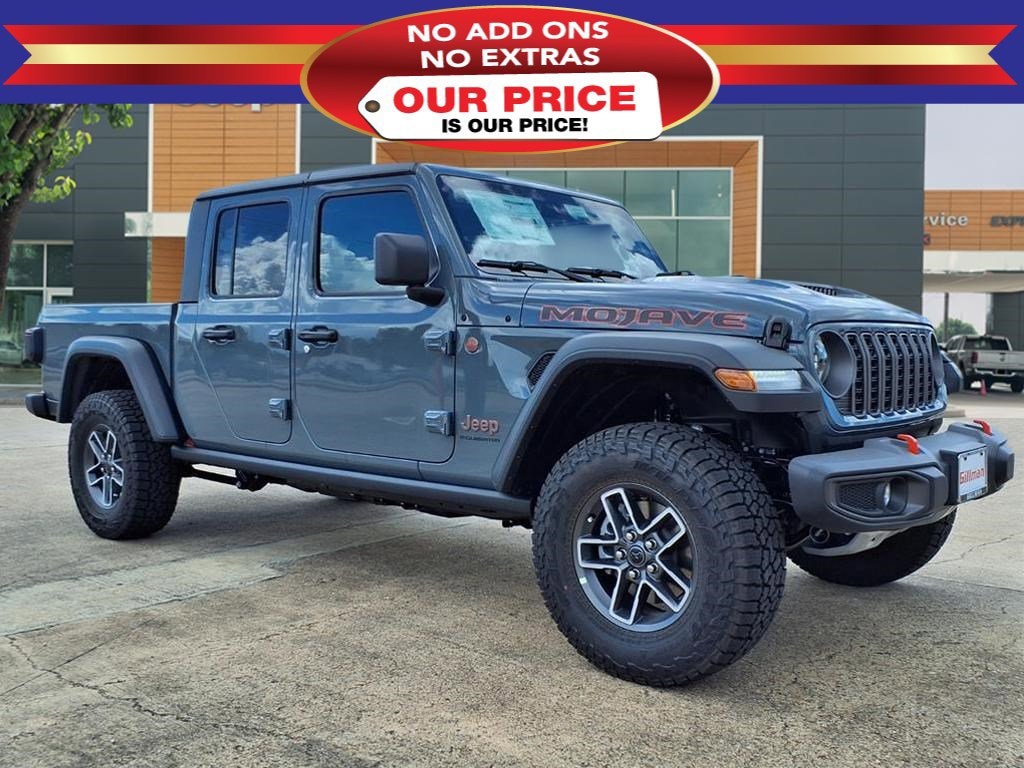 Gillman Chrysler Jeep Dodge Ram is very proud to offer this good-looking 2025 Jeep Gladiator Mojave in Anvil Clearcoat with Black interior. Well equipped with Convenience Group (Heated Front Seats, Heated Steering Wheel, Remote Start System, SiriusXM Radio Service, SiriusXM w/360L, and Universal Garage Door Opener), Quick Order Package 24D Mojave, 12.3" Touchscreen Display, 4-Wheel Disc Brakes, 4.10 Rear Axle Ratio, 4G LTE Wi-Fi Hot Spot, 8 Speakers, 97 MPH Vehicle Max Speed Calibration, ABS brakes, Air Conditioning, Alexa Built-In, Alloy wheels, AM/FM radio: SiriusXM, Apple CarPlay, Apple CarPlay/Android Auto, Automatic temperature control, Black 3-Piece Hard Top, Brake assist, Compass, Connectivity - US/Canada, Delay-off headlights, Driver door bin, Driver vanity mirror, Dual front impact airbags, Dual front side impact airbags, Electronic Stability Control, Emergency communication system: Jeep Connect, Freedom Panel Storage Bag, Front anti-roll bar, Front Bucket Seats, Front Center Armrest w/Storage, Front dual zone A/C, Front fog lights, Front License Plate Bracket, Front reading lights, Fully automatic headlights, Google Android Auto, Heated door mirrors, Heavy Duty Suspension w/Gas Shocks, Illuminated entry, Integrated roll-over protection, Low tire pressure warning, MOPAR All-Weather Slush Mats, MOPAR Spray In Bedliner, Occupant sensing airbag, Outside temperature display, Overhead airbag, Panic alarm, Passenger door bin, Passenger vanity mirror, Power door mirrors, Power steering, Power windows, Premium Cloth Seats w/Sport Bolsters, Radio data system, Radio: Uconnect 5 w/12.3" Display, Rear anti-roll bar, Rear reading lights, Rear Sliding Window, Rear Window Defroster, Remote keyless entry, Security system, Speed control, Split folding rear seat, Steering wheel mounted audio controls, Tachometer, Telescoping steering wheel, Tilt steering wheel, Traction control, Trip computer, USB Host Flip, Variably intermittent wipers, Voltmeter, and Wheels: 17" x 7.5" Dark Gray Painted.