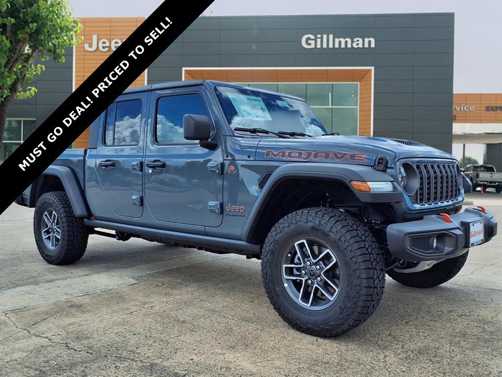 Gillman Chrysler Jeep Dodge Ram is proud to offer this wonderful 2025 Jeep Gladiator Mojave in Anvil Clearcoat with Black interior. Well equipped with Convenience Group (Heated Front Seats, Heated Steering Wheel, Remote Start System, SiriusXM Radio Service, SiriusXM w/360L, and Universal Garage Door Opener), Quick Order Package 24D Mojave, 12.3" Touchscreen Display, 4-Wheel Disc Brakes, 4.10 Rear Axle Ratio, 4G LTE Wi-Fi Hot Spot, 8 Speakers, 97 MPH Vehicle Max Speed Calibration, ABS brakes, Air Conditioning, Alexa Built-In, Alloy wheels, AM/FM radio: SiriusXM, Apple CarPlay, Apple CarPlay/Android Auto, Automatic temperature control, Black 3-Piece Hard Top, Brake assist, Compass, Connectivity - US/Canada, Delay-off headlights, Driver door bin, Driver vanity mirror, Dual front impact airbags, Dual front side impact airbags, Electronic Stability Control, Emergency communication system: Jeep Connect, Freedom Panel Storage Bag, Front anti-roll bar, Front Bucket Seats, Front Center Armrest w/Storage, Front dual zone A/C, Front fog lights, Front License Plate Bracket, Front reading lights, Fully automatic headlights, Google Android Auto, Heated door mirrors, Heavy Duty Suspension w/Gas Shocks, Illuminated entry, Integrated roll-over protection, Low tire pressure warning, MOPAR All-Weather Slush Mats, MOPAR Spray In Bedliner, Occupant sensing airbag, Outside temperature display, Overhead airbag, Panic alarm, Passenger door bin, Passenger vanity mirror, Power door mirrors, Power steering, Power windows, Premium Cloth Seats w/Sport Bolsters, Radio data system, Radio: Uconnect 5 w/12.3" Display, Rear anti-roll bar, Rear reading lights, Rear Sliding Window, Rear Window Defroster, Remote keyless entry, Security system, Speed control, Split folding rear seat, Steering wheel mounted audio controls, Tachometer, Telescoping steering wheel, Tilt steering wheel, Traction control, Trip computer, USB Host Flip, Variably intermittent wipers, Voltmeter, and Wheels: 17" x 7.5" Dark Gray Painted.
