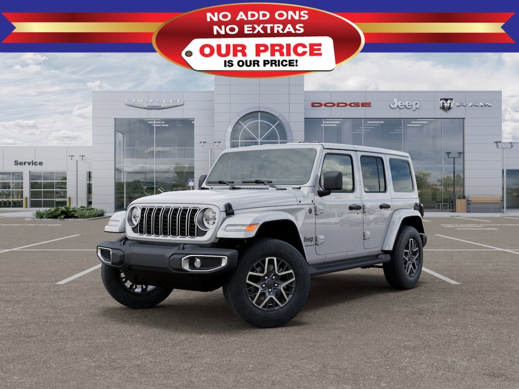 Gillman Chrysler Jeep Dodge Ram is honored to offer this handsome 2026 Jeep Wrangler Sahara in Bright White Clearcoat with Black interior. Well equipped with Quick Order Package 24G, Sahara Popular Equipment Group (12.3" Touchscreen Display, 4G LTE Wi-Fi Hot Spot, Alpine Premium Audio System, Apple CarPlay, Auto High Beam Headlamp Control, Auto-Dimming Rear-View Mirror, Blind Spot & Cross Path Detection, Connected Travel & Traffic Services, Connectivity - US/Canada, For More Info, Call 800-643-2112, Google Android Auto, GPS Navigation, Hard Seat Back, HD Radio, Integrated Center Stack Radio, Integrated Off-Road Camera, Integrated Voice Command w/Bluetooth, Leather Wrapped Park Brake Handle, Leather Wrapped Shift Knob, McKinley Trimmed Seats, ParkSense Rear Park Assist System, Power 4-Way Driver Lumbar Adjust, Power 4-Way Passenger Lumbar Adjust, Power Adjust 8-Way Driver Seat, Power Adjust 8-Way Front Passenger Seat, Radio: Uconnect 5 Nav w/12.3" Display, Side Steps, SiriusXM Radio Service, SiriusXM w/360L, and Universal Garage Door Opener), 3.45 Overall Top Gear Ratio, 4-Wheel Disc Brakes, 8 Speakers, ABS brakes, Air Conditioning, Alloy wheels, AM/FM radio: SiriusXM with 360L, Apple CarPlay/Android Auto, Automatic temperature control, Aux Battery, Body Color 3-Piece Hard Top, Brake assist, Cloth Low-Back Bucket Seats, Compass, Delay-off headlights, Driver door bin, Driver vanity mirror, Dual front impact airbags, Dual front side impact airbags, Electronic Stability Control, Emergency communication system: Jeep Connect, Freedom Panel Storage Bag, Front anti-roll bar, Front Bucket Seats, Front Center Armrest w/Storage, Front dual zone A/C, Front fog lights, Front License Plate Bracket, Front reading lights, Fully automatic headlights, Heated door mirrors, Heated front seats, Heated steering wheel, Heavy Duty Suspension w/Gas Shocks, Illuminated entry, Integrated roll-over protection, Low tire pressure warning, MOPAR All-Weather Floor Mats, Non-Lock Fuel Cap w/o Discriminator, Occupant sensing airbag, Outside temperature display, Overhead airbag, Panic alarm, ParkView Rear Back-Up Camera, Passenger door bin, Passenger vanity mirror, Power door mirrors, Power steering, Power windows, Radio data system, Radio: Uconnect 5 w/12.3" Display, Rear anti-roll bar, Rear reading lights, Rear Window Defroster, Rear Window Wiper/Washer, Remote keyless entry, Security system, Speed control, Split folding rear seat, Steering wheel mounted audio controls, Stop-Start Dual Battery System, Tachometer, Telescoping steering wheel, Tilt steering wheel, Traction control, Trip computer, Variably intermittent wipers, Voltmeter, and Wheels: 18" x 7.5" Machine/Painted Gray.