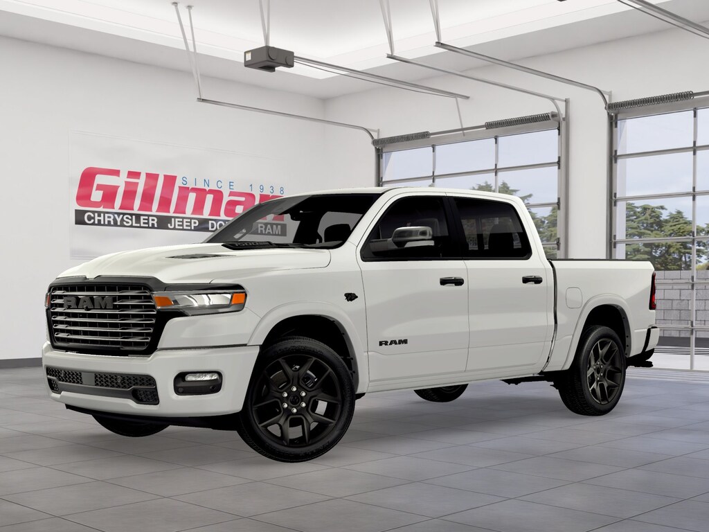 Gillman Chrysler Jeep Dodge Ram is delighted to offer this stunning 2026 Ram 1500 Laramie in Bright White Clearcoat with Black interior. Well equipped with Bed Utility Group (Exterior 115V AC Outlet, MOPAR 4 Adjustable Cargo Tie-Down Hooks, and MOPAR Spray In Bedliner), Laramie Level 1 Equipment Group (Rain Sensitive Windshield Wipers and Remote Tailgate Release), Night Edition (Accent Color Door Handles, Accent Color Premium Power Mirrors, Accent Color Tailgate Handle, Anti-Spin Differential Rear Axle, Auto Power-Folding Mirrors, Auto-Dimming Exterior Driver Mirror, Black Exterior Truck Badging, Black Headlamp Bezels, Black Interior Accents, Black Painted Exterior Mirrors Caps, Black Tail Lamp Bezels, Body Color Front Bumper, Body Color Rear Bumper w/Step Pads, Convex Wide-Angle Exterior Mirror Insert, Dual Exhaust w/Black Tips, Exterior Mirrors Approach Lamps, Exterior Mirrors Courtesy Lamps, Exterior Mirrors w/Heating Element, Exterior Mirrors w/Memory, Exterior Mirrors w/Supplemental Signals, Grille Surround 3 Black Texture 2 Black, Pirelli Brand Tires, Proximity Approach/Departure Lamps, RAM Grille Badge - Black, Sport Performance Hood, and Wheels: 22" x 9" Forged Aluminum), Quick Order Package 27H Laramie, 10 Speakers, 33 Gallon Fuel Tank, 4-Wheel Disc Brakes, 4G LTE Wi-Fi Hot Spot, ABS brakes, Active Noise Control System, Air Conditioning, Alloy wheels, AM/FM radio: SiriusXM with 360L, Apple CarPlay/Android Auto, Audio memory, Auto High-beam Headlights, Auto-dimming door mirrors, Auto-dimming Rear-View mirror, Automatic temperature control, Brake assist, Bumpers: chrome, Chrome Exterior Mirrors, Compass, Connected Travel & Traffic Services, Connectivity - US/Canada, Delay-off headlights, Driver door bin, Driver vanity mirror, Dual front impact airbags, Dual front side impact airbags, Electronic Stability Control, Front anti-roll bar, Front Bucket Seats, Front Center Armrest w/Storage, Front dual zone A/C, Front fog lights, Front License Plate Bracket, Front reading lights, Front wheel independent suspension, Fully automatic headlights, Garage door transmitter, GPS Navigation, Heated door mirrors, Heated front seats, Heated rear seats, Heated steering wheel, Illuminated entry, Integrated Center Stack Radio, Integrated Voice Command w/Bluetooth, Leather steering wheel, Leather Trimmed Bucket Seats, Low tire pressure warning, Memory seat, MOPAR Front & Rear Rubber Floor Mats, Navigation System, Occupant sensing airbag, Off-Road Information Pages, Outside temperature display, Overhead airbag, Overhead console, Panic alarm, ParkView Rear Back-Up Camera, Passenger door bin, Passenger vanity mirror, Power door mirrors, Power driver seat, Power passenger seat, Power steering, Power windows, Radio data system, Radio: Uconnect 5 Nav w/12.0" Display, RAM Grille Badge - Chrome, Rear anti-roll bar, Rear reading lights, Rear seat center armrest, Rear step bumper, Rear Wheelhouse Liners, Remote keyless entry, Security system, SiriusXM Radio Service, SiriusXM w/360L, Speed control, Split folding rear seat, Steering wheel mounted audio controls, Tachometer, Telescoping steering wheel, Tilt steering wheel, Traction control, Trip computer, Turn signal indicator mirrors, USB Host Flip, Variably intermittent wipers, Ventilated front seats, Voltmeter, and Wheels: 20" x 9" Premium Paint/Polish.