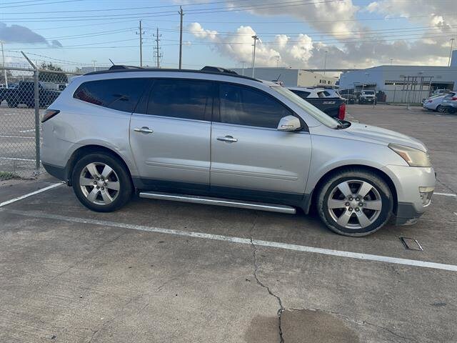 Discover comfort and versatility with this Silver 2013 Chevrolet Traverse LT SUV with 2LT. Equipped with premium features including a 6.5-inch touchscreen infotainment system with Bluetooth, SiriusXM, and HD Radio, plus a Bose premium sound system for an exceptional audio experience. Enjoy peace of mind with a rearview camera, rear parking sensors, and advanced safety features such as side curtain airbags, LATCH child seat anchors, and stability control. Heated front seats, automatic climate control, and captain's chairs in the second row provide year-round comfort for the whole family. The flat-folding third row and in-floor storage offer flexible cargo options, while the power liftgate and remote engine start add convenience. Aluminum alloy wheels, roof rails, and a rear spoiler complete the stylish look. This Traverse is powered by a robust 3.6L V6 engine paired with a 6-speed shiftable automatic transmission for smooth performance. Perfect for families or anyone needing space, technology, and reliability in one package.