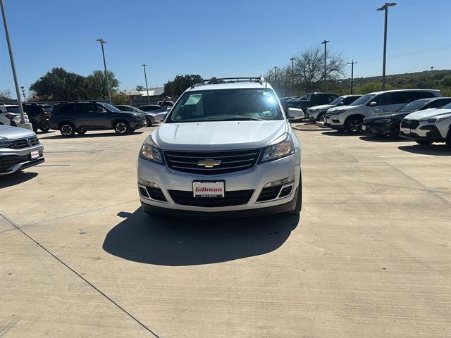 Gillman's Lifetime Engine Warranty lasts as long as you own your vehicle - free with the Gillman Pre-Owned Promise. If the vehicle isn't right for you, return it in purchase condition within 2 days or 200 miles as part of our Happy-Driving Guarantee. (Valid on vehicles under 90,000 miles and less than 7 years old). Discover value and versatility with this off white 2016 Chevrolet Traverse LT w/2LT. Enjoy a powerful 3.6L V6 engine paired with a smooth 6-speed shiftable automatic transmission and front-wheel drive for confident handling. Inside, you'll find comfort and connectivity with heated front seats, premium Bose surround sound, Chevrolet MyLink infotainment, Bluetooth, and a large 6.5-inch touchscreen display. The available navigation and rear entertainment system make every trip enjoyable for the whole family. Convenience features include remote engine start, rearview camera, rear parking sensors, and a power-operated rear liftgate. The spacious three-row interior offers flexible seating, rear air conditioning, and multiple USB and auxiliary inputs. Stylish aluminum alloy wheels, roof rack with cross rails, and chrome accents complete the package. Don't miss your chance to own a dependable SUV that's ready for everyday driving or your next road trip. All vehicles subject to prior sale. We are not responsible for typographical errors and may change information without notice. Photos may not depict the actual vehicle. Tax, title, and license fees not included. Dealer Discount available to all buyers.Vehicles purchased from Gillman Automotive Group include a Bring It Back Guarantee: return the vehicle in purchase condition within two days or 200 miles. New current-model-year vehicles and qualifying pre-owned vehicles (under 90,000 miles and less than 7 years old) are eligible. Guarantee is non-transferable and has no cash value. Lifetime Warranty available on select pre-owned vehicles. See dealer for details; restrictions may apply.