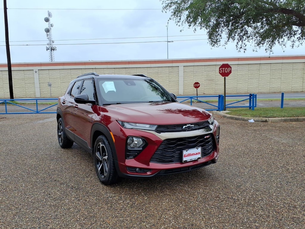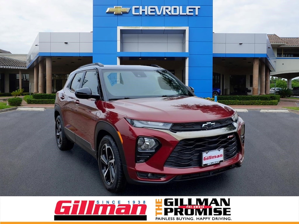 Gillman's Lifetime Engine Warranty lasts as long as you own your vehicle - free with the Gillman Pre-Owned Promise. If the vehicle isn't right for you, return it in purchase condition within 2 days or 200 miles as part of our Happy-Driving Guarantee. Drive in style with this dark red 2022 Chevrolet Trailblazer RS SUV. Enjoy sporty looks and smart tech, including Wireless Apple CarPlay and Android Auto for seamless smartphone integration, a 7-inch Chevrolet Infotainment touch screen, Bluetooth connectivity, and available Wi-Fi hotspot. Safety is front and center with Front Automatic Emergency Braking, Lane Keeping Assist, Pedestrian Detection, and a Rearview Camera. The RS trim adds leatherette accents, a leather-wrapped steering wheel, contrast stitching, black roof rails, and unique exterior details. Comfort features like heated front seats, power driver seat adjustments, and remote engine start make every drive enjoyable. With its efficient ECOTEC 1.3L Turbo engine and CVT, you get a perfect blend of performance and fuel economy. Take advantage of advanced driver assistance, premium connectivity, and bold design-schedule your test drive today! All vehicles subject to prior sale. We are not responsible for typographical errors and may change information without notice. Photos may not depict the actual vehicle. Tax, title, and license fees not included. Dealer Discount available to all buyers.Vehicles purchased from Gillman Automotive Group include a Bring It Back Guarantee: return the vehicle in purchase condition within two days or 200 miles. New current-model-year vehicles and qualifying pre-owned vehicles (under 90,000 miles and less than 7 years old) are eligible. Guarantee is non-transferable and has no cash value. Lifetime Warranty available on select pre-owned vehicles. See dealer for details; restrictions may apply.