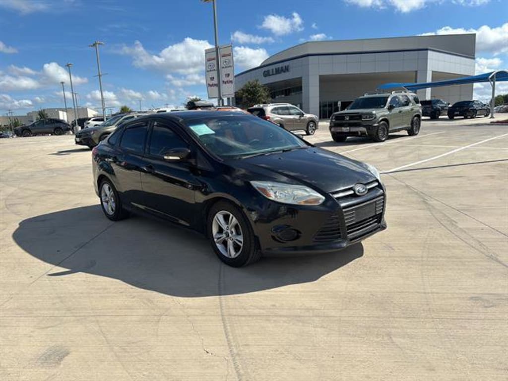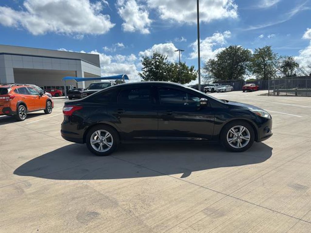 2014 Ford Focus Drive in style with this Black 2014 Ford Focus SE 4dr Sedan! Featuring a responsive 2.0L Flex Fuel I4 engine and smooth FWD handling, this Focus offers a balance of efficiency and performance. Enjoy convenience and connectivity with SYNC infotainment, Bluetooth wireless data link, USB/AUX inputs, voice-operated radio, and SIRIUS Satellite Radio. Stay comfortable with height-adjustable driver's seat, air conditioning, power windows, and cruise control. Safety is a priority, with 4-wheel ABS, traction/stability control, front/side/curtain airbags, child safety locks, and a post-collision safety system. The 60/40 split rear seat, large trunk, and ample storage make this sedan practical for everyday life. Additional features include keyless entry, programmable safety key, reverse sensing system, and auto on/off headlights. Well-maintained and ready for a new owner!