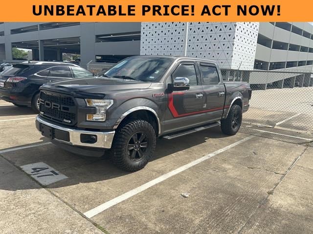Check out this 2015 Ford F-150 XL SuperCrew 4x2 in Dark Gray-a reliable full-size pickup ready for work or play. With a spacious 4-door cabin and a 5.5 ft. short bed, this truck is built for versatility. It features the powerful 3.5L Flex Fuel V6 engine paired with a 6-speed shiftable automatic transmission. Enjoy practical touches like a Class IV trailer hitch with 4-pin wiring, roll stability control, trailer stability control, and a removable tailgate for easy loading. The interior offers durable cloth upholstery, a 60-40 split folding rear seat, rubber/vinyl flooring, and a multi-function display with AM/FM stereo and CD player. Safety comes first with dual front and side curtain airbags, LATCH child seat anchors, traction and stability control, and a tire pressure monitoring system. Additional conveniences include a reverse sensing system, power steering, front cupholders, and solar-tinted rear glass. Rugged black bumpers, grille, and door handles complete the look. Perfect for those who need a tough, no-nonsense truck that's ready for any challenge.