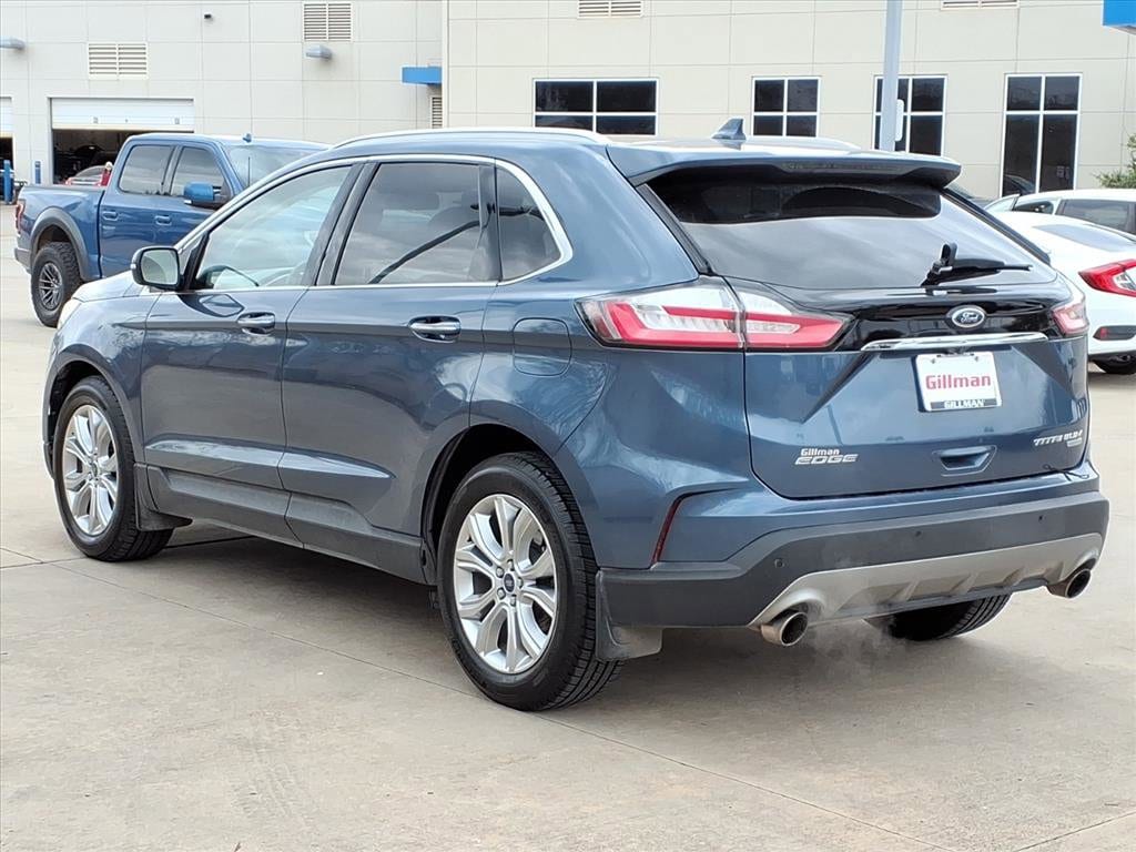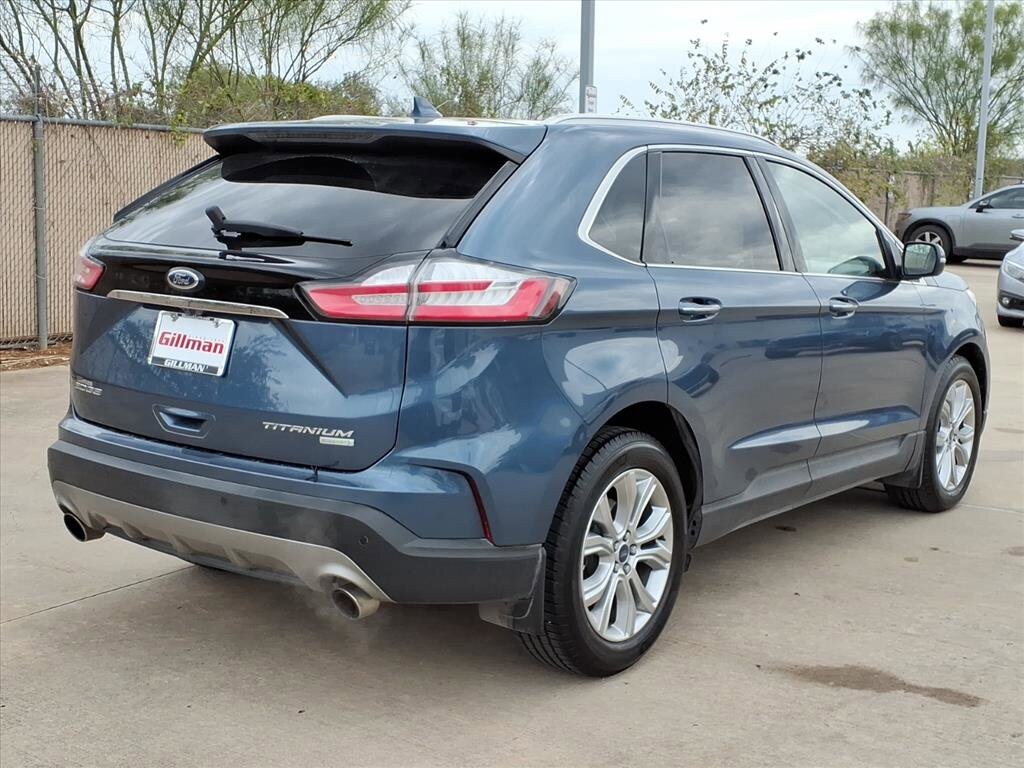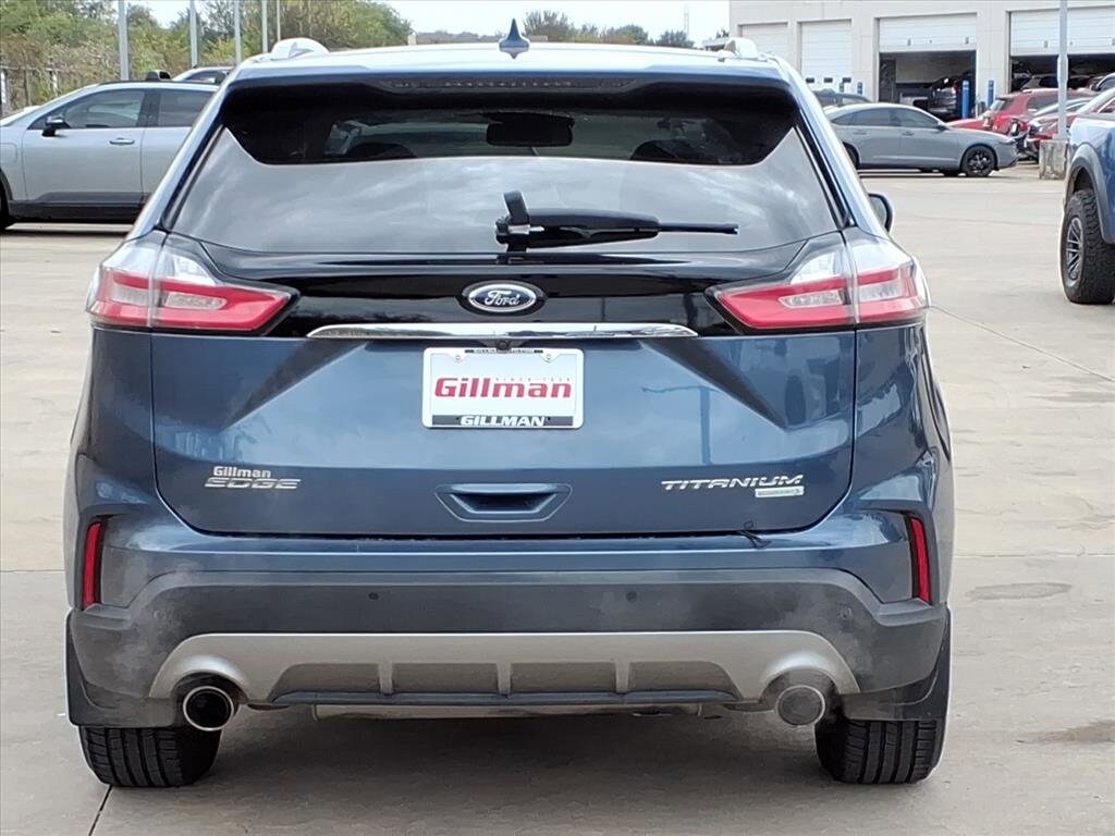 Gillman's Lifetime Engine Warranty lasts as long as you own your vehicle - free with the Gillman Pre-Owned Promise. If the vehicle isn't right for you, return it in purchase condition within 2 days or 200 miles as part of our Happy-Driving Guarantee. (Valid on vehicles under 90,000 miles and less than 7 years old). Experience comfort and style in this Blue 2019 Ford Edge Titanium 4dr Crossover. Powered by a responsive EcoBoost 2.0L Turbo I4 engine with an 8-speed shiftable automatic transmission, this Edge provides a smooth, efficient drive. Enjoy premium features like leather-trimmed upholstery, heated front seats, and a B&O PLAY premium sound system with 11 speakers and 800 watts of audio power. Stay connected with SYNC infotainment, an 8-inch touchscreen, Apple CarPlay and Android Auto, plus FordPass Connect with Wi-Fi hotspot. Advanced safety technologies include Ford Co-Pilot360 Assist+, front automatic emergency braking, pedestrian detection, lane keeping assist, blind spot monitoring, and rear cross traffic alert. Convenience is enhanced with a sensor-activated power liftgate, remote engine start, rain-sensing wipers, and driver seat memory settings. The Titanium trim adds luxury touches like ambient lighting, chrome window trim, and a power tilt/telescopic steering wheel. This Edge is ready to elevate your daily commute or weekend getaway. Schedule your test drive today! All vehicles subject to prior sale. We are not responsible for typographical errors and may change information without notice. Photos may not depict the actual vehicle. Tax, title, and license fees not included. Dealer Discount available to all buyers.Vehicles purchased from Gillman Automotive Group include a Bring It Back Guarantee: return the vehicle in purchase condition within two days or 200 miles. New current-model-year vehicles and qualifying pre-owned vehicles (under 90,000 miles and less than 7 years old) are eligible. Guarantee is non-transferable and has no cash value. Lifetime Warranty available on select pre-owned vehicles. See dealer for details; restrictions may apply.