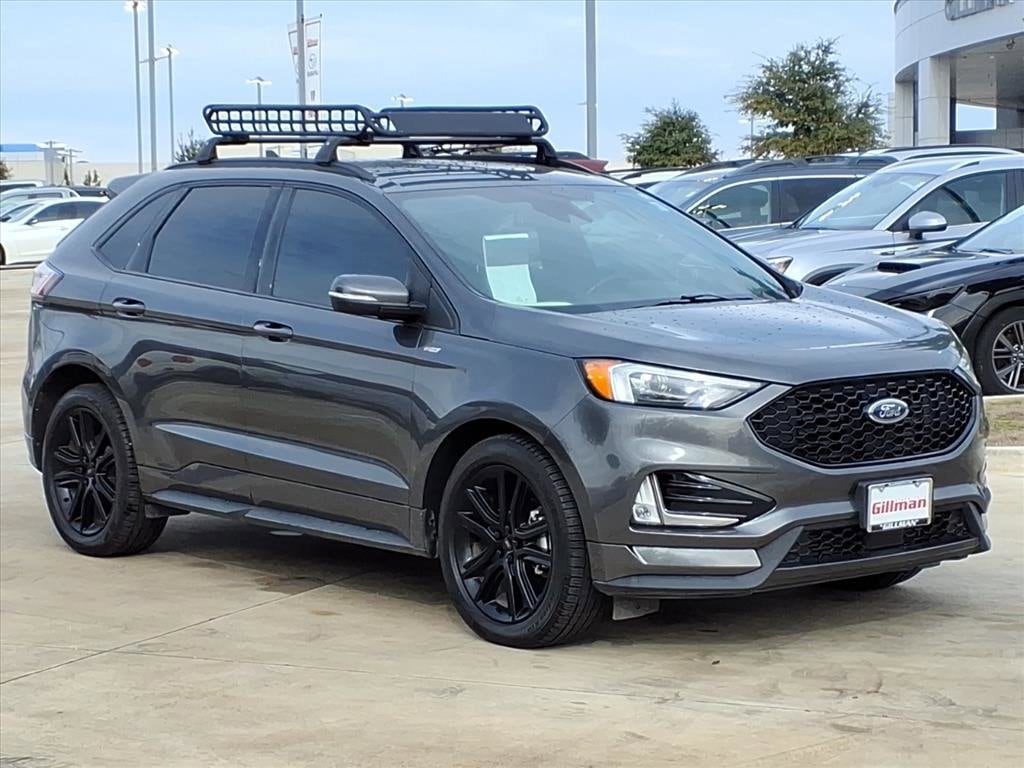 Gillman's Lifetime Engine Warranty lasts as long as you own your vehicle - free with the Gillman Pre-Owned Promise. If the vehicle isn't right for you, return it in purchase condition within 2 days or 200 miles as part of our Happy-Driving Guarantee. (Valid on vehicles under 90,000 miles and less than 7 years old). Experience sporty style and advanced technology with this 2020 Ford Edge ST Line in Dark Gray. Powered by a responsive EcoBoost 2.0L Turbo I4 engine and an 8-speed shiftable automatic transmission, this crossover delivers both excitement and efficiency. Enjoy top tech features like FordPass Connect with Wi-Fi hotspot, SYNC infotainment system with an 8-inch touchscreen, Apple CarPlay and Android Auto integration, and a rearview camera with washer. Safety comes standard with Ford Co-Pilot360 Assist+, which includes lane keeping assist, front automatic emergency braking, pedestrian detection, blind spot monitoring, and rear cross traffic alert. The cabin boasts faux suede upholstery accents, contrast stitching, power-adjustable front seats, dual-zone automatic climate control, and a leather-wrapped steering wheel. The exterior is enhanced by LED headlights, fog lights, and sleek black roof rails. With 51,536 miles on the odometer, this well-maintained Edge offers the perfect blend of comfort, safety, and style for your daily commute or next adventure. Schedule your test drive today and see why the Ford Edge ST Line is a standout in its class. All vehicles subject to prior sale. We are not responsible for typographical errors and may change information without notice. Photos may not depict the actual vehicle. Tax, title, and license fees not included. Dealer Discount available to all buyers.Vehicles purchased from Gillman Automotive Group include a Bring It Back Guarantee: return the vehicle in purchase condition within two days or 200 miles. New current-model-year vehicles and qualifying pre-owned vehicles (under 90,000 miles and less than 7 years old) are eligible. Guarantee is non-transferable and has no cash value. Lifetime Warranty available on select pre-owned vehicles. See dealer for details; restrictions may apply.