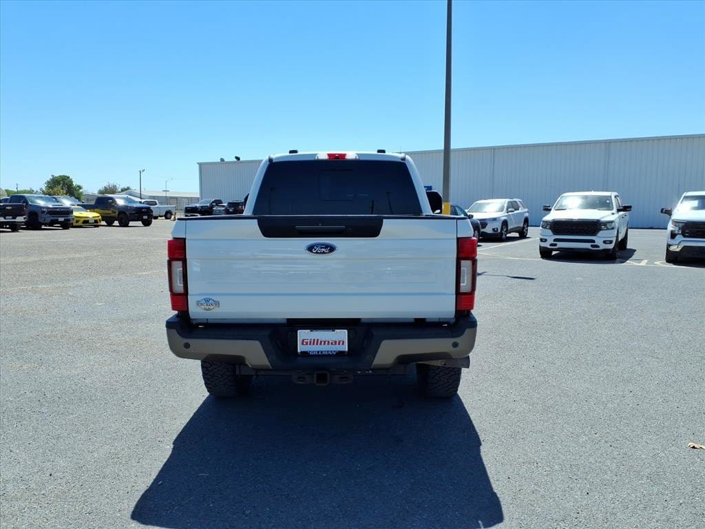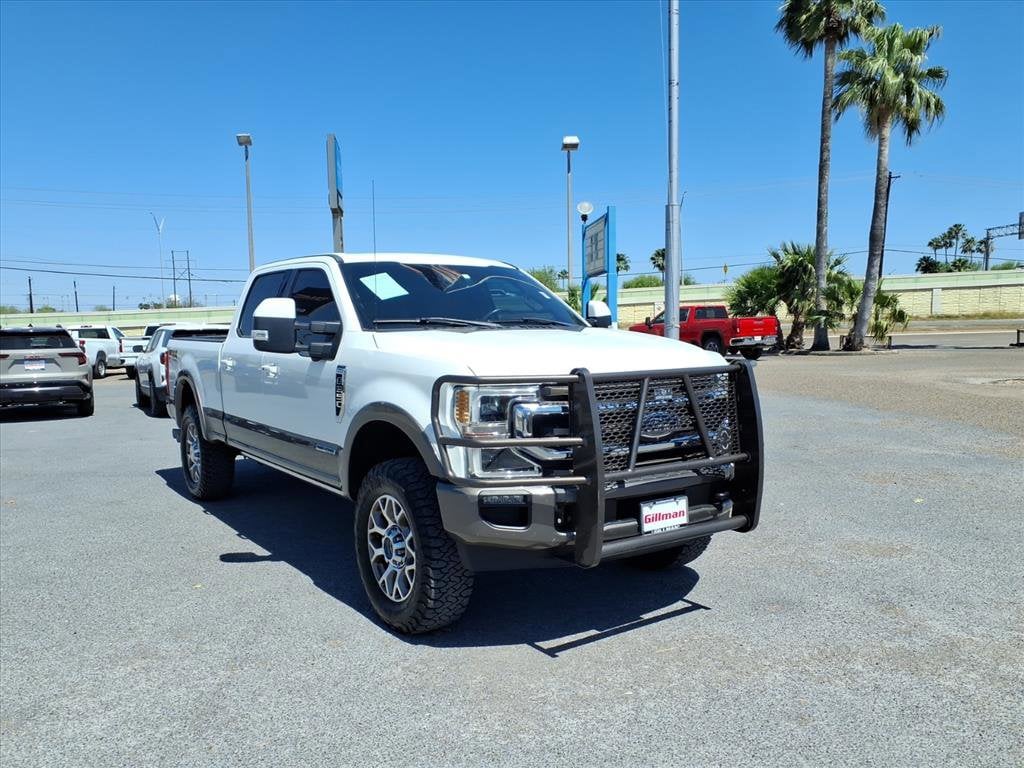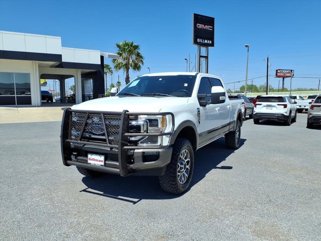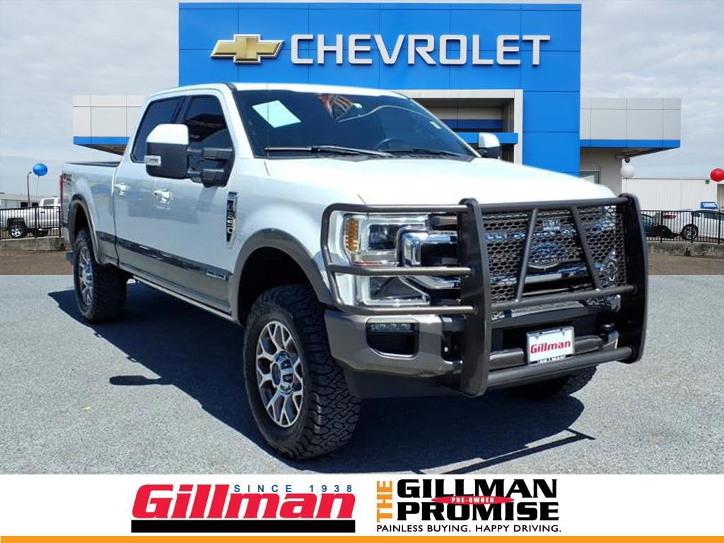Gillman's Lifetime Engine Warranty lasts as long as you own your vehicle - free with the Gillman Pre-Owned Promise. If the vehicle isn't right for you, return it in purchase condition within 2 days or 200 miles as part of our Happy-Driving Guarantee. (Valid on vehicles under 90,000 miles and less than 7 years old). Experience luxury and power in this stunning white 2021 Ford F-250 Super Duty King Ranch 4x4 Crew Cab. Built to handle tough jobs and provide premium comfort, this King Ranch boasts a robust Power Stroke 6.7L Turbo Diesel V8 engine with 475hp and 1050 lb-ft of torque, paired with a 10-speed automatic transmission. Enjoy exceptional towing capability with features like Trailer Brake Controller, Trailer Coverage Blind Spot Safety, and Trailer Rearview Camera System. The upscale King Ranch interior features heated and ventilated leather seats, a heated steering wheel, power-adjustable pedals, and an 8-inch touchscreen with SYNC infotainment, Apple CarPlay, Android Auto, and Bang & Olufsen premium audio. Stay connected with FordPass Connect Wi-Fi hotspot, and enjoy extra safety from Front Automatic Emergency Braking, Blind Spot Monitoring, Lane Deviation Sensors, and Rear Cross Traffic Alert. Additional highlights include remote start, power folding towing mirrors, power tailgate, surround view camera, and rain sensing wipers. Whether at work or play, this F-250 delivers unmatched capability and comfort. All vehicles subject to prior sale. We are not responsible for typographical errors and may change information without notice. Photos may not depict the actual vehicle. Tax, title, and license fees not included. Dealer Discount available to all buyers.Vehicles purchased from Gillman Automotive Group include a Bring It Back Guarantee: return the vehicle in purchase condition within two days or 200 miles. New current-model-year vehicles and qualifying pre-owned vehicles (under 90,000 miles and less than 7 years old) are eligible. Guarantee is non-transferable and has no cash value. Lifetime Warranty available on select pre-owned vehicles. See dealer for details; restrictions may apply.