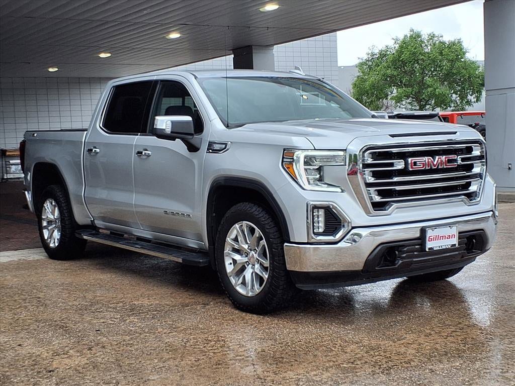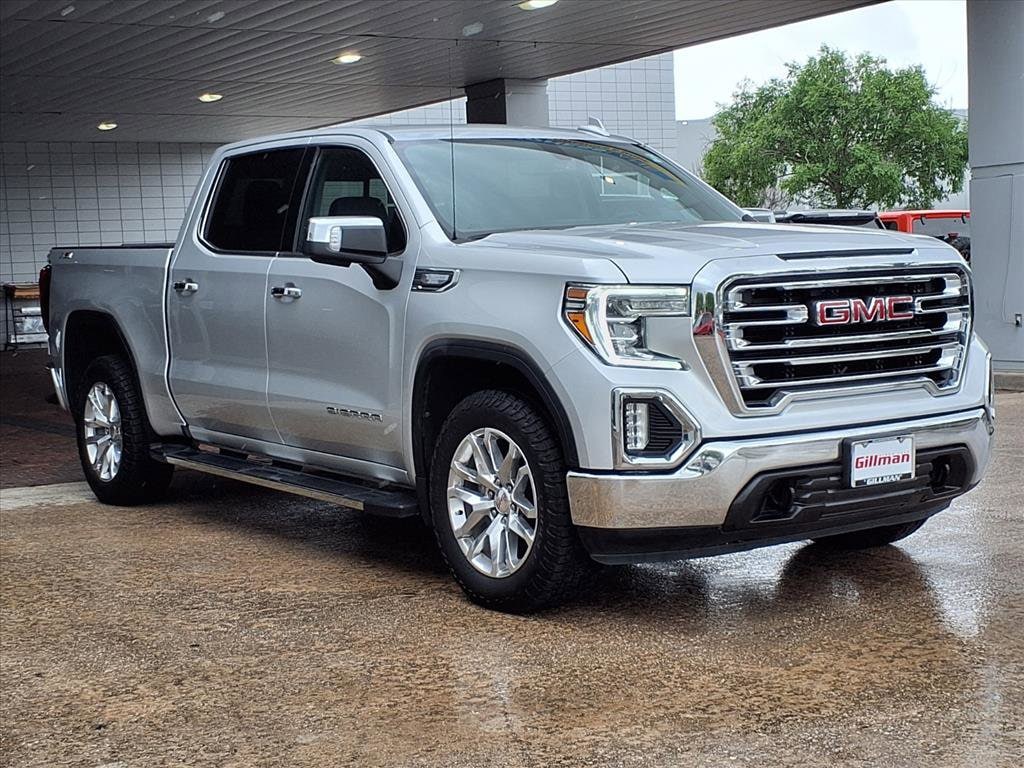 Gillman's Lifetime Engine Warranty lasts as long as you own your vehicle - free with the Gillman Pre-Owned Promise. If the vehicle isn't right for you, return it in purchase condition within 2 days or 200 miles as part of our Happy-Driving Guarantee. Discover power and luxury with this Silver 2021 GMC Sierra 1500 SLT Crew Cab 4x4. Equipped with the robust EcoTec3 5.3L V8 engine and 8-speed shiftable automatic transmission, this truck is ready for any adventure. Enjoy advanced features including the X31 Off-Road Package, Texas Edition SLT Premium Package, SLT Convenience Package, and 20-inch polished aluminum wheels with all-terrain tires. Stay connected with an 8-inch GMC Infotainment System offering wireless Apple CarPlay/Android Auto, Bluetooth, and a Wi-Fi hotspot. Benefit from heated and ventilated leather-trimmed front bucket seats, dual-zone automatic climate control, a heated steering wheel, power-folding side mirrors, and memory settings for the driver. The multi-function split-folding tailgate, spray-on bed liner, and trailer hitch with integrated brake controller make hauling a breeze. Safety is paramount with features like a rearview camera, rear seat reminder, lane change alert, and rear cross-traffic alert. This Sierra is the perfect blend of rugged capability and premium comfort-ready for work or play. All vehicles subject to prior sale. We are not responsible for typographical errors and may change information without notice. Photos may not depict the actual vehicle. Tax, title, and license fees not included. Dealer Discount available to all buyers. Vehicles purchased from Gillman Automotive Group include a Bring It Back Guarantee: return the vehicle in purchase condition within two days or 200 miles. New current-model-year vehicles and qualifying pre-owned vehicles (under 90,000 miles and less than 7 years old) are eligible. Guarantee is non-transferable and has no cash value. Lifetime Warranty available on select pre-owned vehicles. See dealer for details; restrictions may apply.