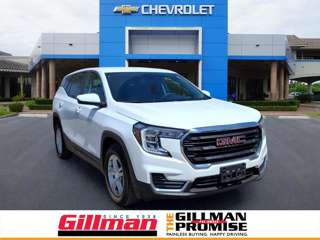 Gillman's Lifetime Engine Warranty lasts as long as you own your vehicle - free with the Gillman Pre-Owned Promise. If the vehicle isn't right for you, return it in purchase condition within 2 days or 200 miles as part of our Happy-Driving Guarantee. Discover the 2024 GMC Terrain SLE in classic white-a versatile SUV that blends style, comfort, and cutting-edge technology. Powered by a fuel-efficient 1.5L Turbo I4 engine and a smooth 9-speed automatic transmission, this Terrain is ready for daily commutes or weekend getaways. Enjoy seamless connectivity with wireless Apple CarPlay and Android Auto, plus Amazon Alexa and OnStar Guardian app compatibility. Safety is front and center with features like Front Automatic Emergency Braking, Lane Keeping Assist, Pedestrian Detection, and a Rearview Camera System. Stay comfortable with premium cloth upholstery, automatic climate control, and ample cargo space thanks to 60/40 split rear seats. Additional highlights include LED headlights and taillights, aluminum alloy wheels, push-button start, and Bluetooth wireless data link. Experience peace of mind and convenience in every drive with the 2024 GMC Terrain SLE-schedule your test drive today! All vehicles subject to prior sale. We are not responsible for typographical errors and may change information without notice. Photos may not depict the actual vehicle. Tax, title, and license fees not included. Dealer Discount available to all buyers.Vehicles purchased from Gillman Automotive Group include a Bring It Back Guarantee: return the vehicle in purchase condition within two days or 200 miles. New current-model-year vehicles and qualifying pre-owned vehicles (under 90,000 miles and less than 7 years old) are eligible. Guarantee is non-transferable and has no cash value. Lifetime Warranty available on select pre-owned vehicles. See dealer for details; restrictions may apply.Certified Pre-Owned