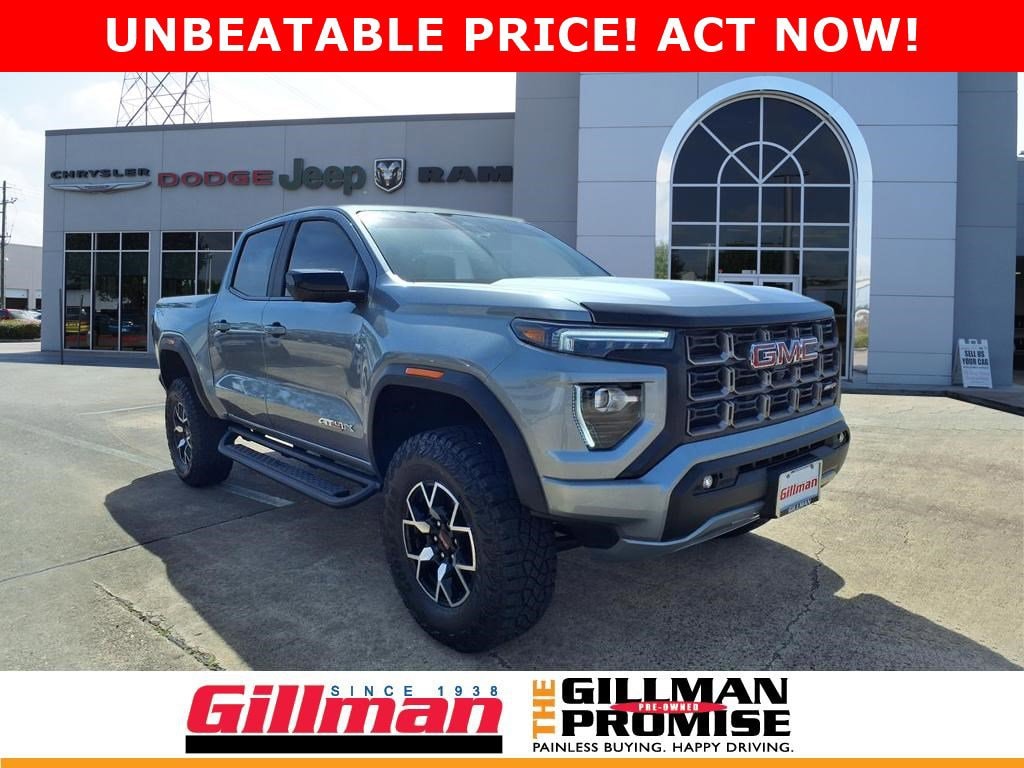 Gillman's Lifetime Engine Warranty lasts as long as you own your vehicle - free with the Gillman Pre-Owned Promise. If the vehicle isn't right for you, return it in purchase condition within 2 days or 200 miles as part of our Happy-Driving Guarantee. Experience the future of midsize trucks with the 2026 GMC Canyon AT4X Crew Cab 4x4, featuring just 200 miles on the odometer. Finished in a striking gray, this Canyon is built for adventure with off-road tuned suspension, spool valve front and rear shocks, and both front and rear locking differentials. Stay connected and in control with a massive 11.3-inch touchscreen featuring Google Built-In infotainment, wireless Apple CarPlay and Android Auto, and Bose premium audio. Safety is paramount with adaptive cruise control, lane keeping assist with blind spot integration, surround view camera system, rear cross traffic alert, and both front and rear automatic emergency braking. Comfort features include heated and ventilated front seats, leather-trimmed upholstery, a power moonroof, and a spray-on bed liner for maximum utility. Powered by a robust 2.7L Turbo I4 engine paired with an 8-speed automatic transmission and advanced 4x4 system, the Canyon AT4X is ready for work or play. Don't miss your chance to own this practically new, fully loaded truck-schedule your test drive today! All vehicles subject to prior sale. We are not responsible for typographical errors and may change information without notice. Photos may not depict the actual vehicle. Tax, title, and license fees not included. Dealer Discount available to all buyers. Vehicles purchased from Gillman Automotive Group include a Bring It Back Guarantee: return the vehicle in purchase condition within two days or 200 miles. New current-model-year vehicles and qualifying pre-owned vehicles (under 90,000 miles and less than 7 years old) are eligible. Guarantee is non-transferable and has no cash value. Lifetime Warranty available on select pre-owned vehicles. See dealer for details; restrictions may apply.