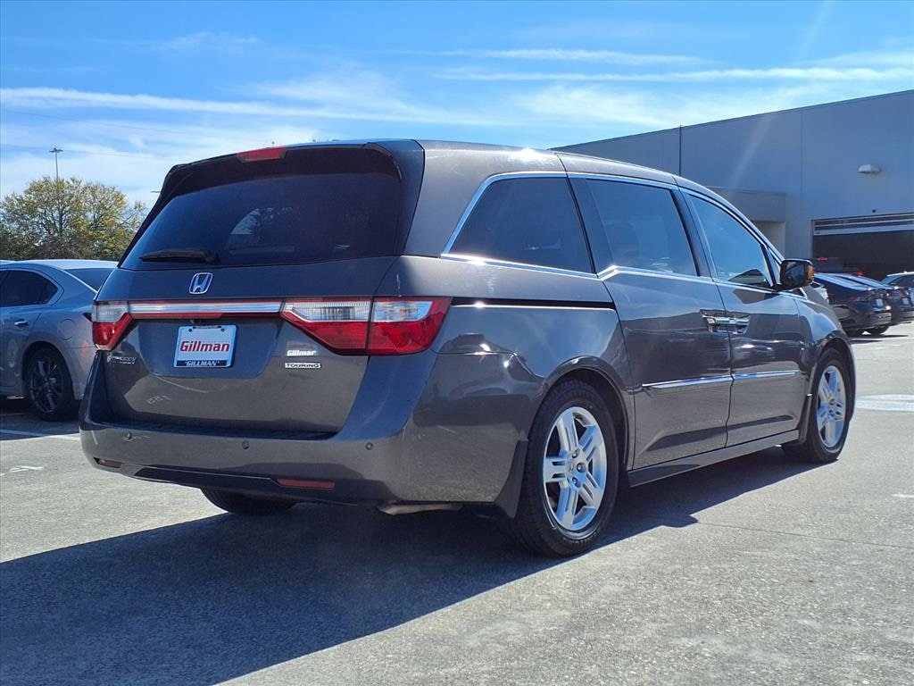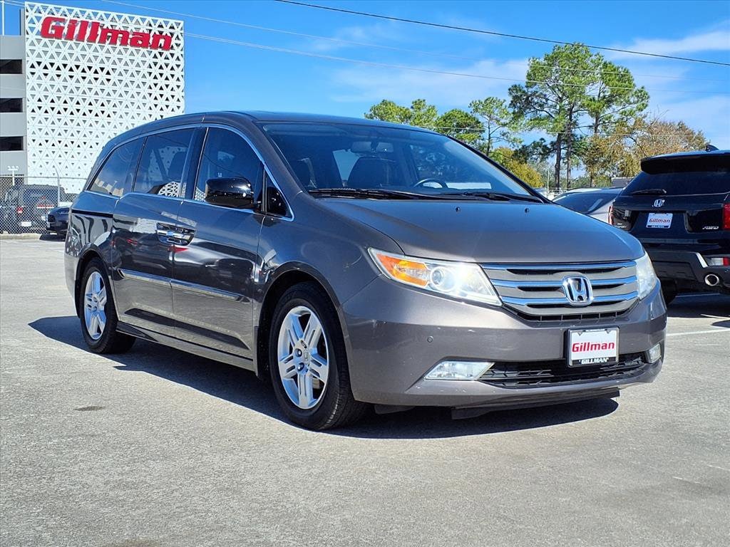 Gillman's Lifetime Engine Warranty lasts as long as you own your vehicle - free with the Gillman Pre-Owned Promise. If the vehicle isn't right for you, return it in purchase condition within 2 days or 200 miles as part of our Happy-Driving Guarantee. (Valid on vehicles under 90,000 miles and less than 7 years old). Experience the ultimate in family travel with this 2012 Honda Odyssey Touring. This versatile minivan offers a premium ride with leather-trimmed upholstery, heated front seats, and a power sunroof. Enjoy peace of mind thanks to a rearview camera system, front and rear parking sensors, and advanced safety features like side curtain airbags and a tire pressure monitoring system. The spacious interior features seating for up to eight, split-folding third-row seats, and a power-operated rear liftgate for easy cargo access. Entertainment is top-notch, with an 8-inch infotainment screen, DVD player, SiriusXM satellite radio, Bluetooth, and a 15GB hard drive for your favorite tunes. Additional highlights include navigation with real-time traffic, aluminum alloy wheels, tri-zone automatic climate control, and convenient power sliding doors. With thoughtful storage options like a cooled compartment and rear cupholders, this Odyssey is ready for every adventure. Well-maintained and loaded with features, it's the perfect blend of comfort, convenience, and reliability. All vehicles subject to prior sale. We are not responsible for typographical errors and may change information without notice. Photos may not depict the actual vehicle. Tax, title, and license fees not included. Dealer Discount available to all buyers.Vehicles purchased from Gillman Automotive Group include a Bring It Back Guarantee: return the vehicle in purchase condition within two days or 200 miles. New current-model-year vehicles and qualifying pre-owned vehicles (under 90,000 miles and less than 7 years old) are eligible. Guarantee is non-transferable and has no cash value. Lifetime Warranty available on select pre-owned vehicles. See dealer for details; restrictions may apply.