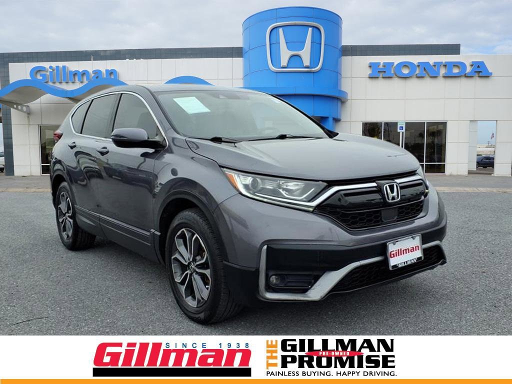 Gillman's Lifetime Engine Warranty lasts as long as you own your vehicle - free with the Gillman Pre-Owned Promise. If the vehicle isn't right for you, return it in purchase condition within 2 days or 200 miles as part of our Happy-Driving Guarantee. Discover comfort and versatility in this dark gray 2021 Honda CR-V EX SUV. Powered by a 1.5L turbocharged engine with smooth CVT transmission and front-wheel drive, this CR-V is designed for both performance and fuel efficiency. Enjoy convenient features like a power moonroof, remote engine start, heated front seats, and dual-zone automatic climate control. Stay connected and safe with Apple CarPlay and Android Auto integration, Honda Sensing safety suite with adaptive cruise control, lane keeping assist, collision mitigation braking, blind spot monitoring, and rear cross traffic alert. The spacious interior offers a 7-inch touchscreen, rearview camera, split-folding rear seats, and ample cargo space with a retractable cargo cover. Aluminum alloy wheels, LED daytime running lights, and a sleek exterior complete the package. Experience reliability and comfort-schedule your test drive today! All vehicles subject to prior sale. We are not responsible for typographical errors and may change information without notice. Photos may not depict the actual vehicle. Tax, title, and license fees not included. Dealer Discount available to all buyers.Vehicles purchased from Gillman Automotive Group include a Bring It Back Guarantee: return the vehicle in purchase condition within two days or 200 miles. New current-model-year vehicles and qualifying pre-owned vehicles (under 90,000 miles and less than 7 years old) are eligible. Guarantee is non-transferable and has no cash value. Lifetime Warranty available on select pre-owned vehicles. See dealer for details; restrictions may apply.