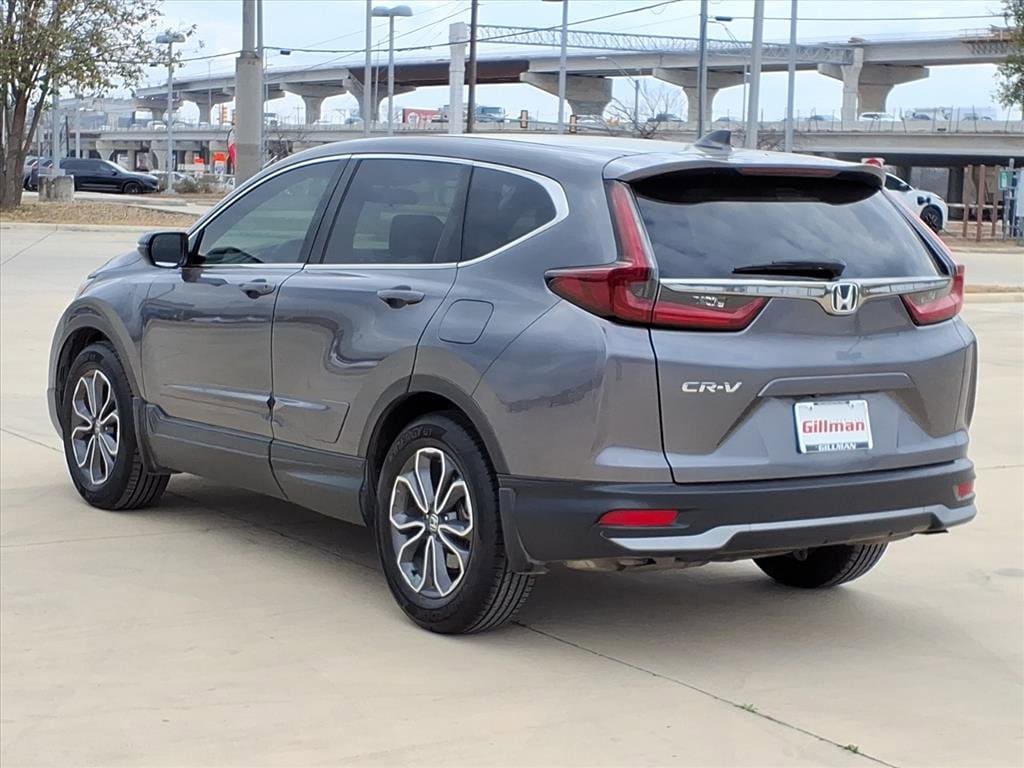 Gillman's Lifetime Engine Warranty lasts as long as you own your vehicle - free with the Gillman Pre-Owned Promise. If the vehicle isn't right for you, return it in purchase condition within 2 days or 200 miles as part of our Happy-Driving Guarantee. (Valid on vehicles under 90,000 miles and less than 7 years old). Experience style and reliability with this dark gray 2022 Honda CR-V EX 4dr SUV. Powered by a responsive 1.5L Turbo engine and smooth CVT, this CR-V delivers impressive fuel efficiency and a comfortable ride. Enjoy advanced safety features including Adaptive Cruise Control, Lane Keeping Assist, Blind Spot Monitoring, and Automatic Emergency Braking with Pedestrian Detection. Stay connected with Apple CarPlay, Android Auto, Bluetooth, and a 7-inch touchscreen infotainment system. Convenience abounds with Remote Engine Start, Power Moonroof, heated front seats, dual-zone automatic climate control, and a power-adjustable driver's seat. Aluminum alloy wheels, LED daytime running lights, and a spacious, versatile interior make this SUV perfect for families or commuters. Backed by Honda's reputation for dependability and loaded with features, this CR-V EX is ready for your next adventure. Schedule your test drive today! All vehicles subject to prior sale. We are not responsible for typographical errors and may change information without notice. Photos may not depict the actual vehicle. Tax, title, and license fees not included. Dealer Discount available to all buyers.Vehicles purchased from Gillman Automotive Group include a Bring It Back Guarantee: return the vehicle in purchase condition within two days or 200 miles. New current-model-year vehicles and qualifying pre-owned vehicles (under 90,000 miles and less than 7 years old) are eligible. Guarantee is non-transferable and has no cash value. Lifetime Warranty available on select pre-owned vehicles. See dealer for details; restrictions may apply.