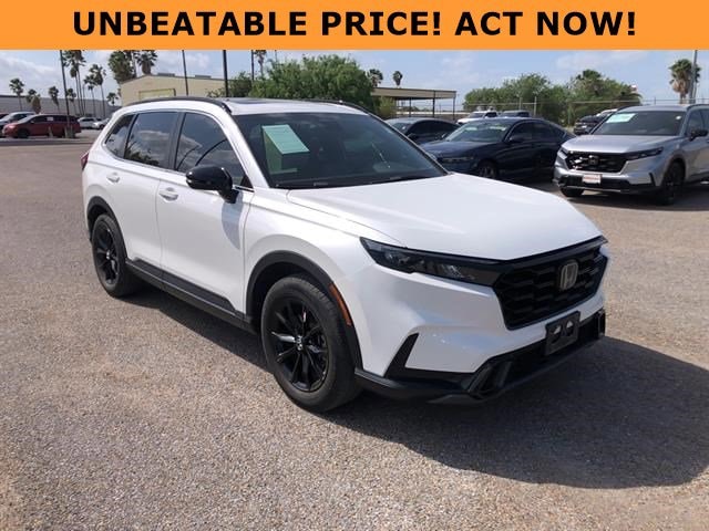 Gillman's Lifetime Engine Warranty lasts as long as you own your vehicle - free with the Gillman Pre-Owned Promise. If the vehicle isn't right for you, return it in purchase condition within 2 days or 200 miles as part of our Happy-Driving Guarantee. Discover the 2023 Honda CR-V Hybrid Sport in stunning white-an efficient, family-friendly SUV with advanced safety and technology features. This CR-V Hybrid offers a 2.0L Hybrid I4 engine paired with a 1-speed direct-drive automatic transmission for smooth, economical driving. Stay connected with Apple CarPlay, Android Auto, Bluetooth, and multiple USB power outlets. Enjoy comfort with dual-zone automatic climate control, heated front seats, a power-adjustable driver seat with lumbar support, and a tilt/slide moonroof. Safety is a priority with adaptive cruise control, lane keeping assist, front and rear automatic emergency braking, blind spot monitoring, and rear cross-traffic alert. LED headlights, 18-inch alloy wheels, and a power liftgate add style and convenience. HondaLink app compatibility, remote engine start, and a multi-view rear camera system round out a well-equipped package. Experience the reliability, innovation, and comfort the CR-V Hybrid is known for-perfect for daily commutes or weekend adventures. Visit us today to take a closer look! All vehicles subject to prior sale. We are not responsible for typographical errors and may change information without notice. Photos may not depict the actual vehicle. Tax, title, and license fees not included. Dealer Discount available to all buyers.Vehicles purchased from Gillman Automotive Group include a Bring It Back Guarantee: return the vehicle in purchase condition within two days or 200 miles. New current-model-year vehicles and qualifying pre-owned vehicles (under 90,000 miles and less than 7 years old) are eligible. Guarantee is non-transferable and has no cash value. Lifetime Warranty available on select pre-owned vehicles. See dealer for details; restrictions may apply.