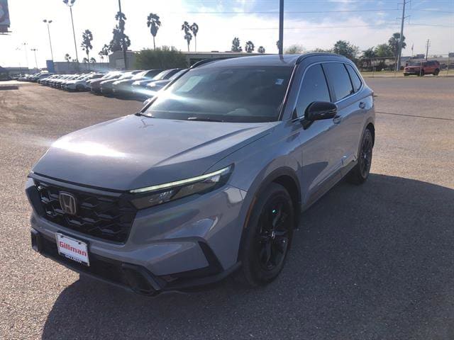 Gillman's Lifetime Engine Warranty lasts as long as you own your vehicle - free with the Gillman Pre-Owned Promise. If the vehicle isn't right for you, return it in purchase condition within 2 days or 200 miles as part of our Happy-Driving Guarantee. Experience the perfect blend of efficiency, style, and advanced technology with this Silver 2023 Honda CR-V Hybrid Sport. Powered by a responsive 2.0L Hybrid engine and smooth 1-speed direct-drive automatic transmission, this SUV delivers impressive fuel economy and a dynamic drive. Stay connected and entertained with a 7-inch touchscreen, Android Auto and Apple CarPlay integration, and multiple USB outlets (front and rear). Safety is paramount, featuring Honda Sensing technology with front automatic emergency braking, lane keeping assist, adaptive cruise control with stop and go, and rear multi-view camera system. Enjoy comfort and convenience with heated front seats, dual-zone automatic climate control, a power moonroof, remote engine start, and a power-adjustable driver's seat. The stylish exterior boasts LED headlights, 18" alloy wheels, and black roof rails, making this CR-V stand out on the road. With HondaLink smart device compatibility and ample cargo space, this CR-V Hybrid Sport is ready for your next adventure. Schedule your test drive today and discover why the CR-V Hybrid is one of the most sought-after SUVs on the market. All vehicles subject to prior sale. We are not responsible for typographical errors and may change information without notice. Photos may not depict the actual vehicle. Tax, title, and license fees not included. Dealer Discount available to all buyers.Vehicles purchased from Gillman Automotive Group include a Bring It Back Guarantee: return the vehicle in purchase condition within two days or 200 miles. New current-model-year vehicles and qualifying pre-owned vehicles (under 90,000 miles and less than 7 years old) are eligible. Guarantee is non-transferable and has no cash value. Lifetime Warranty available on select pre-owned vehicles. See dealer for details; restrictions may apply.