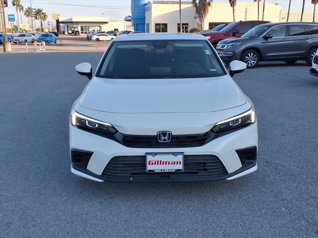 Gillman's Lifetime Engine Warranty lasts as long as you own your vehicle - free with the Gillman Pre-Owned Promise. If the vehicle isn't right for you, return it in purchase condition within 2 days or 200 miles as part of our Happy-Driving Guarantee. Experience modern style and advanced technology with this 2023 Honda Civic EX Sedan in classic white. Powered by a fuel-efficient 1.5L Turbo engine and smooth CVT, this Civic delivers both spirited performance and impressive MPG. Enjoy peace of mind with advanced safety features including Front Automatic Emergency Braking, Lane Keeping Assist, Adaptive Cruise Control with Stop and Go, and Traffic Sign Recognition. Stay seamlessly connected with Apple CarPlay, Android Auto, and HondaLink compatibility, all accessible via a 7-inch touchscreen display. The spacious interior features dual-zone automatic climate control, heated front seats, a power moonroof, and a rearview camera for added comfort and convenience. Additional highlights include remote engine start, Bluetooth connectivity, and LED headlights for a premium driving experience. Visit us today and see why the Honda Civic EX remains a top choice for drivers who value reliability, efficiency, and advanced features. All vehicles subject to prior sale. We are not responsible for typographical errors and may change information without notice. Photos may not depict the actual vehicle. Tax, title, and license fees not included. Dealer Discount available to all buyers.Vehicles purchased from Gillman Automotive Group include a Bring It Back Guarantee: return the vehicle in purchase condition within two days or 200 miles. New current-model-year vehicles and qualifying pre-owned vehicles (under 90,000 miles and less than 7 years old) are eligible. Guarantee is non-transferable and has no cash value. Lifetime Warranty available on select pre-owned vehicles. See dealer for details; restrictions may apply.