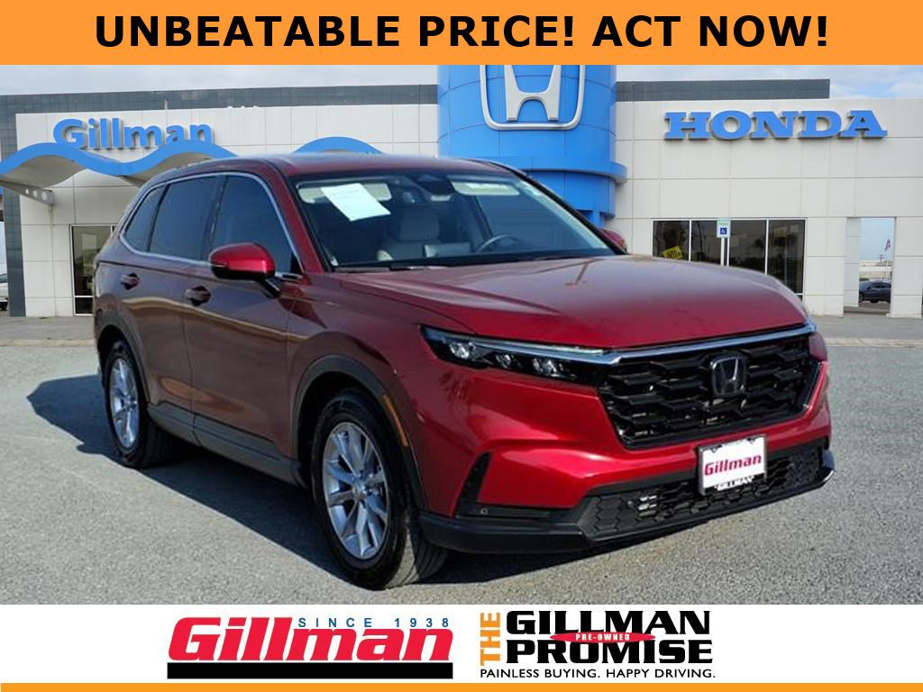Gillman's Lifetime Engine Warranty lasts as long as you own your vehicle - free with the Gillman Pre-Owned Promise. If the vehicle isn't right for you, return it in purchase condition within 2 days or 200 miles as part of our Happy-Driving Guarantee. Experience style and innovation in this 2024 Honda CR-V EX-L, finished in striking dark red. Powered by a fuel-efficient 1.5L Turbo I4 engine with smooth CVT transmission and FWD, this SUV is designed for both comfort and performance. Step inside to enjoy premium leather-trimmed upholstery, heated front seats, and a power moonroof. Stay seamlessly connected with wireless Apple CarPlay and Android Auto on a vibrant 9-inch infotainment touchscreen, plus Bluetooth and multiple USB-C outlets. Safety is top priority, featuring adaptive cruise control, front and rear automatic emergency braking, lane keeping assist, blind spot monitoring, and rear cross traffic alert. The power liftgate, remote start, and memory driver's seat add convenience to every journey. Aluminum alloy wheels and LED lighting complete the sophisticated look. Discover why the CR-V EX-L is one of the most trusted SUVs on the road-visit us for a test drive today. All vehicles subject to prior sale. We are not responsible for typographical errors and may change information without notice. Photos may not depict the actual vehicle. Tax, title, and license fees not included. Dealer Discount available to all buyers.Vehicles purchased from Gillman Automotive Group include a Bring It Back Guarantee: return the vehicle in purchase condition within two days or 200 miles. New current-model-year vehicles and qualifying pre-owned vehicles (under 90,000 miles and less than 7 years old) are eligible. Guarantee is non-transferable and has no cash value. Lifetime Warranty available on select pre-owned vehicles. See dealer for details; restrictions may apply.
