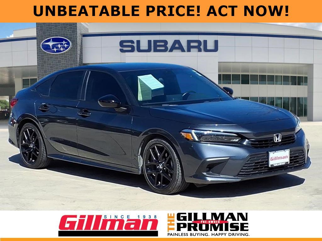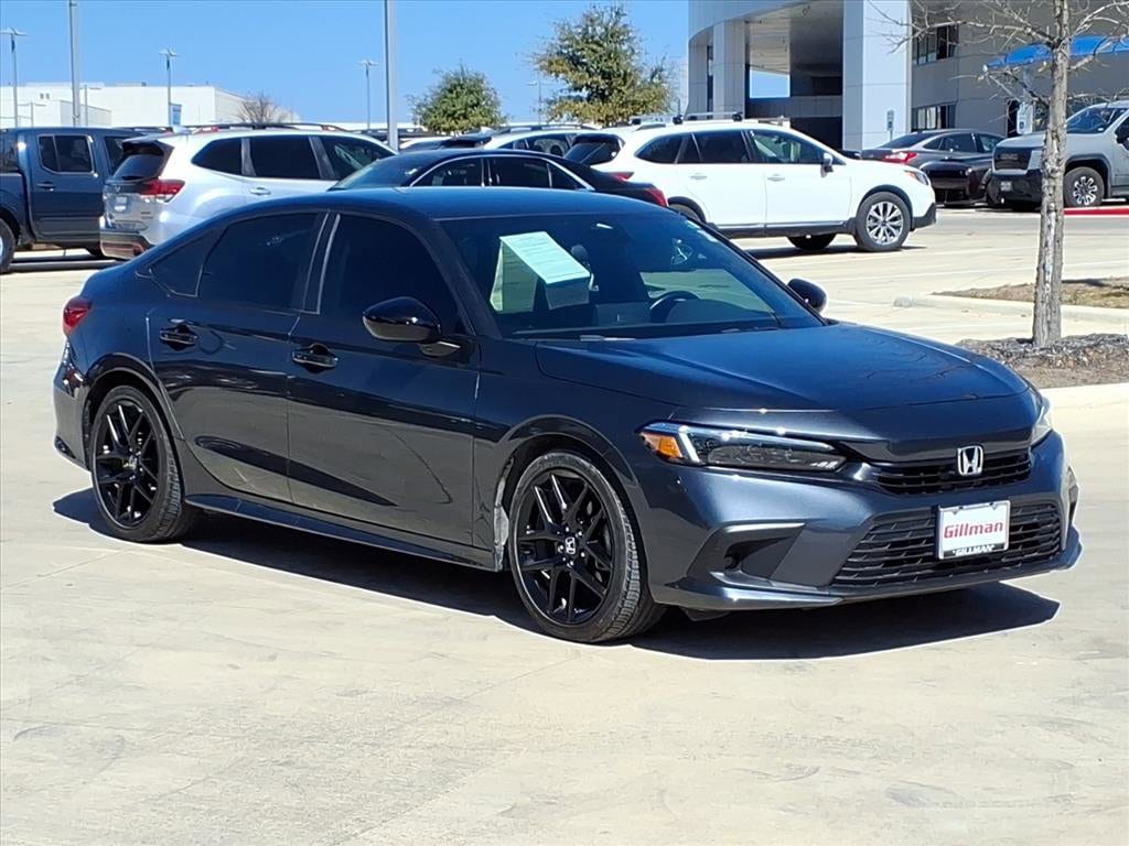 Gillman's Lifetime Engine Warranty lasts as long as you own your vehicle - free with the Gillman Pre-Owned Promise. If the vehicle isn't right for you, return it in purchase condition within 2 days or 200 miles as part of our Happy-Driving Guarantee. (Valid on vehicles under 90,000 miles and less than 7 years old). Drive in style with this gray 2024 Honda Civic Sport 4dr Sedan! Enjoy a sporty look with a sleek decklid rear spoiler, 17-inch alloy wheels, and LED headlights. Stay connected and entertained with a 7-inch touchscreen, Apple CarPlay, Android Auto, Bluetooth, and USB front power outlets. Your comfort is prioritized with automatic climate control, height-adjustable driver seat, and a leather-wrapped steering wheel. Advanced safety features include adaptive cruise control, lane keeping assist, front automatic emergency braking, pedestrian detection, and a multi-view rear camera. Push-button start, remote engine start, and proximity entry make every trip convenient. Reliable, stylish, and packed with tech, this Civic Sport is ready for your next adventure-don't miss out! All vehicles subject to prior sale. We are not responsible for typographical errors and may change information without notice. Photos may not depict the actual vehicle. Tax, title, and license fees not included. Dealer Discount available to all buyers.Vehicles purchased from Gillman Automotive Group include a Bring It Back Guarantee: return the vehicle in purchase condition within two days or 200 miles. New current-model-year vehicles and qualifying pre-owned vehicles (under 90,000 miles and less than 7 years old) are eligible. Guarantee is non-transferable and has no cash value. Lifetime Warranty available on select pre-owned vehicles. See dealer for details; restrictions may apply.