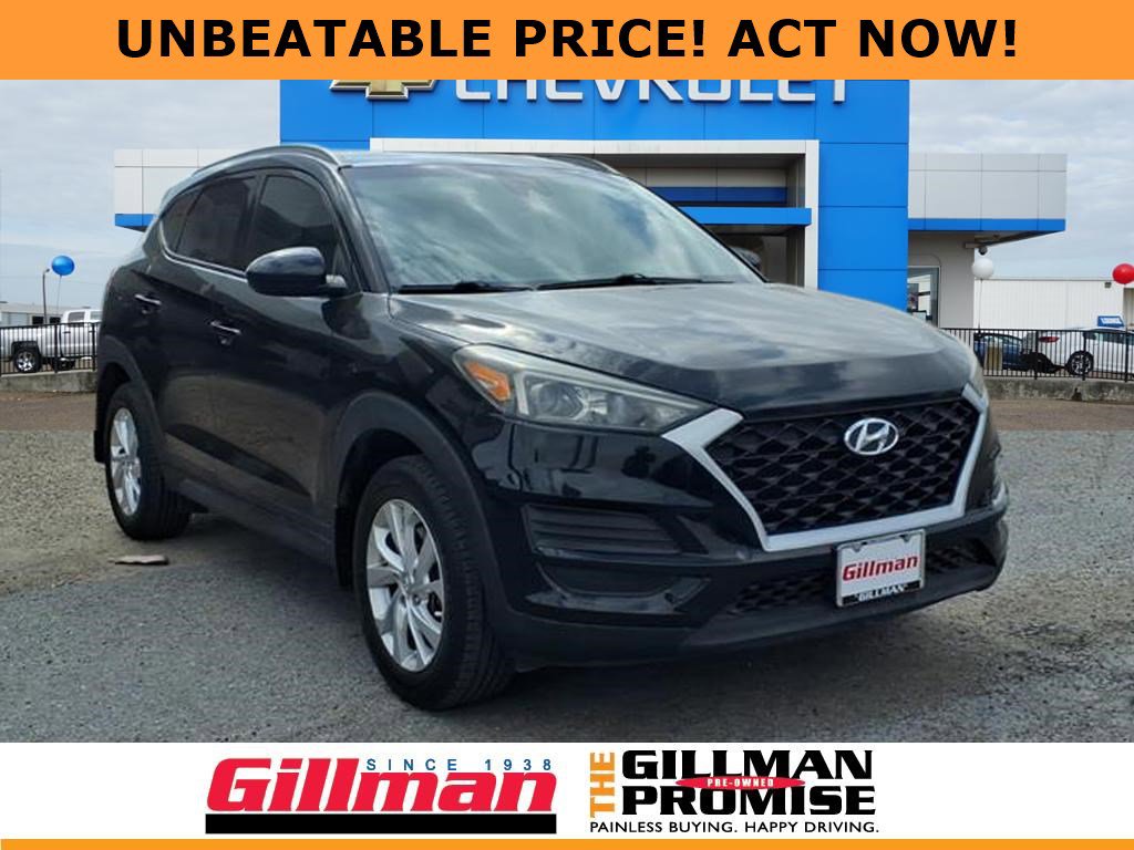 Gillman's Lifetime Engine Warranty lasts as long as you own your vehicle - free with the Gillman Pre-Owned Promise. If the vehicle isn't right for you, return it in purchase condition within 2 days or 200 miles as part of our Happy-Driving Guarantee. (Valid on vehicles under 90,000 miles and less than 7 years old). Looking for a reliable, stylish, and tech-savvy SUV? Check out this 2019 Hyundai TUCSON Value! Enjoy the comfort of heated front seats, power-adjustable driver's seat, and a spacious cabin with 60/40 split-folding rear seats for flexible cargo space. Stay connected with a 7-inch touchscreen, Apple CarPlay, Android Auto, Bluetooth, and Blue Link infotainment. Safety comes first with features like lane keeping assist, front automatic emergency braking, rear cross traffic alert, blind spot monitoring, and a rearview camera. Additional perks include push-button start, dual-level cargo storage, aluminum alloy wheels, roof rails, and privacy glass. Powered by a fuel-efficient 2.0L I4 engine with a smooth 6-speed automatic transmission, this Tucson is ready for your daily drive or next adventure. Experience peace of mind with Hyundai's advanced safety and technology features in an SUV that's built for today's driver. All vehicles subject to prior sale. We are not responsible for typographical errors and may change information without notice. Photos may not depict the actual vehicle. Tax, title, and license fees not included. Dealer Discount available to all buyers.Vehicles purchased from Gillman Automotive Group include a Bring It Back Guarantee: return the vehicle in purchase condition within two days or 200 miles. New current-model-year vehicles and qualifying pre-owned vehicles (under 90,000 miles and less than 7 years old) are eligible. Guarantee is non-transferable and has no cash value. Lifetime Warranty available on select pre-owned vehicles. See dealer for details; restrictions may apply.