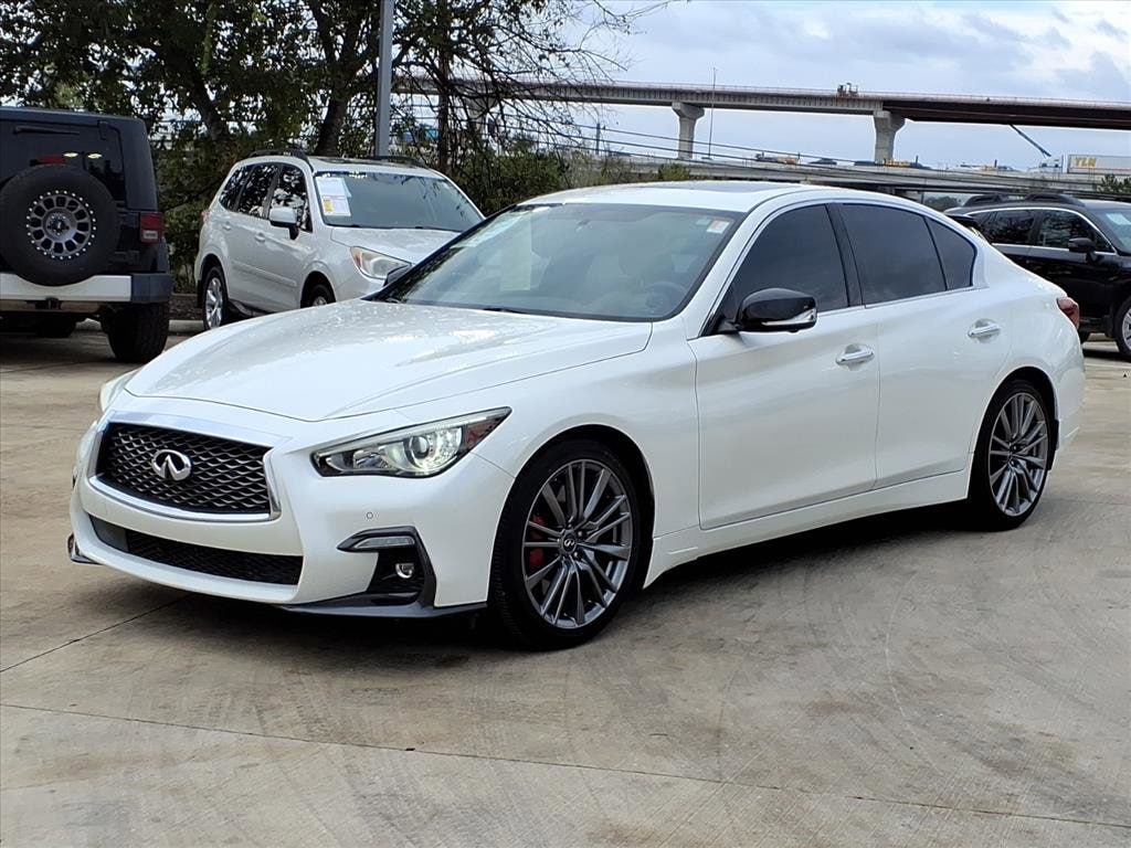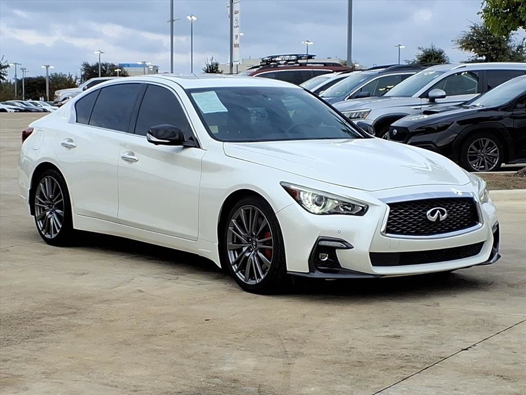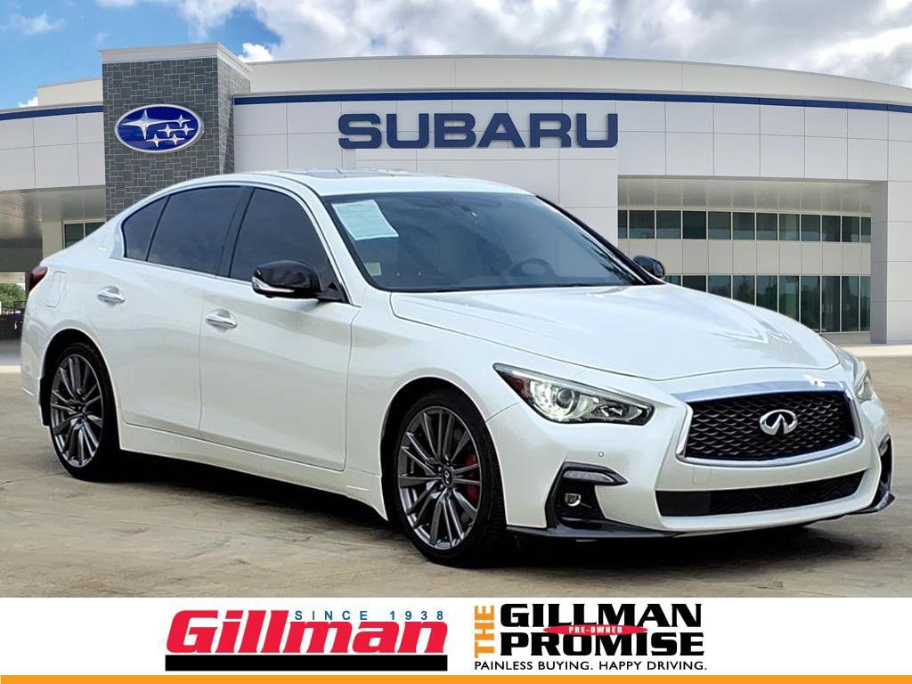 Gillman's Lifetime Engine Warranty lasts as long as you own your vehicle - free with the Gillman Pre-Owned Promise. If the vehicle isn't right for you, return it in purchase condition within 2 days or 200 miles as part of our Happy-Driving Guarantee. (Valid on vehicles under 90,000 miles and less than 7 years old). Experience exhilarating performance and sophisticated luxury with this White 2018 INFINITI Q50 Red Sport 400 Sedan. Powered by a 3.0L Twin Turbo V6 delivering an impressive 400hp, paired with a 7-speed shiftable automatic and rear-wheel drive, this Q50 is engineered for driving enthusiasts. Enjoy advanced safety with Front Automatic Emergency Braking, Surround View Camera System, Blind Spot Safety, and Rear Cross Traffic Alert. Stay connected and entertained with dual touchscreen InTouch infotainment, Bluetooth, SiriusXM, and a Bose premium sound system. Comfort features include semi-aniline leather upholstery, heated front seats, heated steering wheel, dual-zone automatic climate control, and power-adjustable seats with memory. The sport-tuned suspension, aluminum alloy wheels, paddle shifters, and distinctive styling-complete with LED headlights and a rear spoiler-make every drive memorable. Remote engine start, sunroof, and advanced driver assistance round out this well-equipped sport sedan. Don't miss this blend of power, technology, and style-schedule your test drive today! All vehicles subject to prior sale. We are not responsible for typographical errors and may change information without notice. Photos may not depict the actual vehicle. Tax, title, and license fees not included. Dealer Discount available to all buyers.Vehicles purchased from Gillman Automotive Group include a Bring It Back Guarantee: return the vehicle in purchase condition within two days or 200 miles. New current-model-year vehicles and qualifying pre-owned vehicles (under 90,000 miles and less than 7 years old) are eligible. Guarantee is non-transferable and has no cash value. Lifetime Warranty available on select pre-owned vehicles. See dealer for details; restrictions may apply.