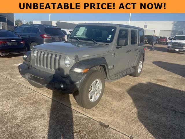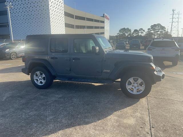 Adventure awaits in this rugged Gray 2019 Jeep Wrangler Unlimited Sport S 4x4! Built for both city cruising and off-road trails, this versatile SUV features the sought-after Quick Order Package 28S and a durable Black 3-Piece Hard Top for all-weather driving. Enjoy modern tech with a 5-inch Uconnect infotainment screen, Bluetooth connectivity, and voice-operated controls for hands-free convenience. Stay comfortable with manually adjustable seats, cruise control, and a tilt-and-telescopic steering wheel. Safety and functionality are top priority with rear and front tow hooks, rearview camera, hill holder control, power locks with keyless entry, and advanced stability control systems. The Wrangler's 2.0L Turbo engine and 8-speed automatic transmission provide an exhilarating yet efficient drive, while features like rear privacy glass, alloy wheels, and a removable roof add to its iconic style. Don't miss out on the perfect blend of legendary Jeep capability and everyday comfort-test drive it today!