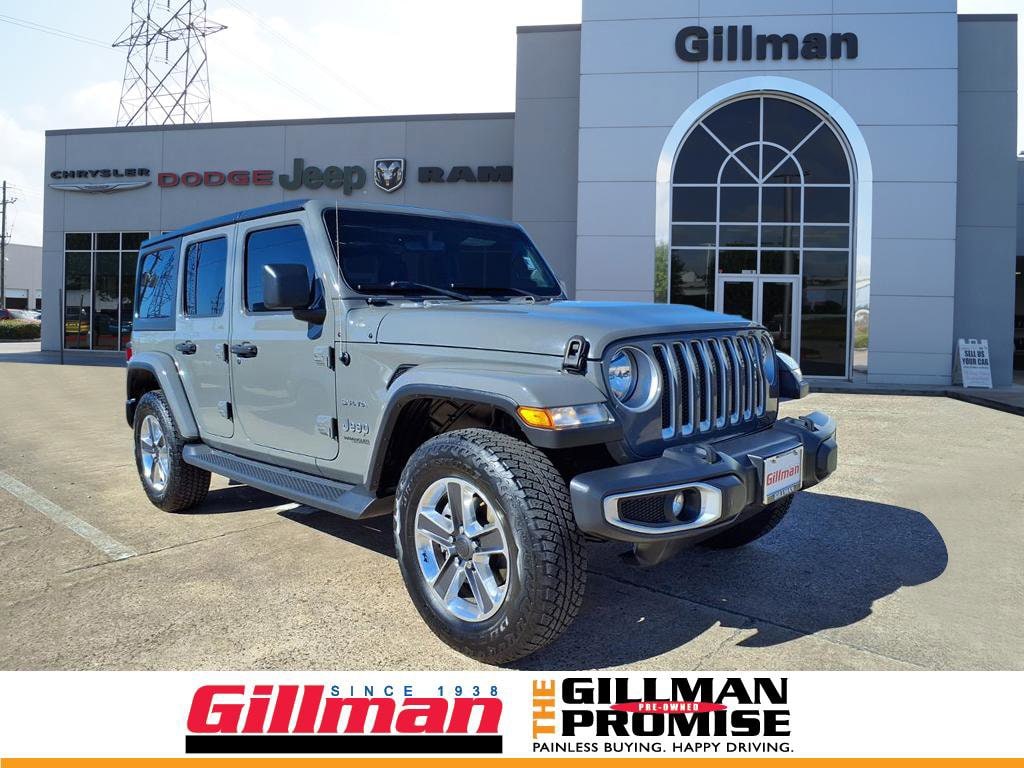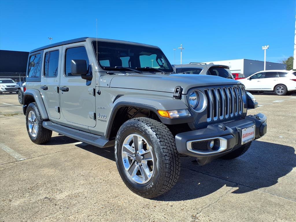 Gillman's Lifetime Engine Warranty lasts as long as you own your vehicle - free with the Gillman Pre-Owned Promise. If the vehicle isn't right for you, return it in purchase condition within 2 days or 200 miles as part of our Happy-Driving Guarantee. Adventure awaits in this Gray 2020 Jeep Wrangler Unlimited Sahara 4x4. Built for both rugged trails and city streets, this SUV features legendary Jeep capability with part-time 4WD, robust Pentastar 3.6L V6 engine, and a 6-speed manual transmission. Enjoy comfort and convenience with Uconnect infotainment system, 7-inch touchscreen, Apple CarPlay/Android Auto, Alpine premium audio, and automatic climate control. Safety and utility are top priorities thanks to a rearview camera, hill holder control, stability control, multiple airbags, and both front/rear tow hooks. The 3-piece black hard top, running boards, and premium alloy wheels add style and versatility, while split-folding rear seats and ample cargo space make it road trip ready. Start your next journey in this iconic, well-equipped Wrangler Sahara. All vehicles subject to prior sale. We are not responsible for typographical errors and may change information without notice. Photos may not depict the actual vehicle. Tax, title, and license fees not included. Dealer Discount available to all buyers. Vehicles purchased from Gillman Automotive Group include a Bring It Back Guarantee: return the vehicle in purchase condition within two days or 200 miles. New current-model-year vehicles and qualifying pre-owned vehicles (under 90,000 miles and less than 7 years old) are eligible. Guarantee is non-transferable and has no cash value. Lifetime Warranty available on select pre-owned vehicles. See dealer for details; restrictions may apply.