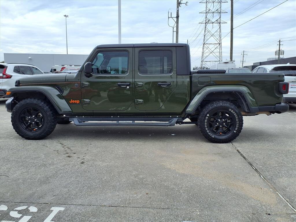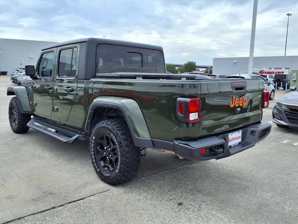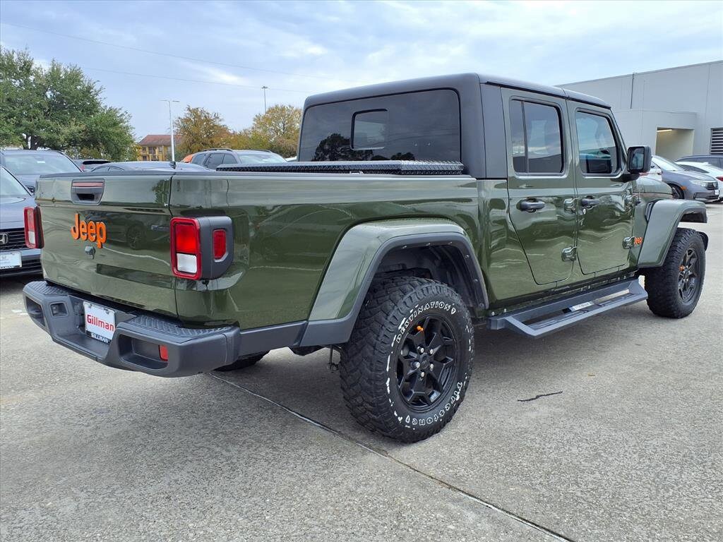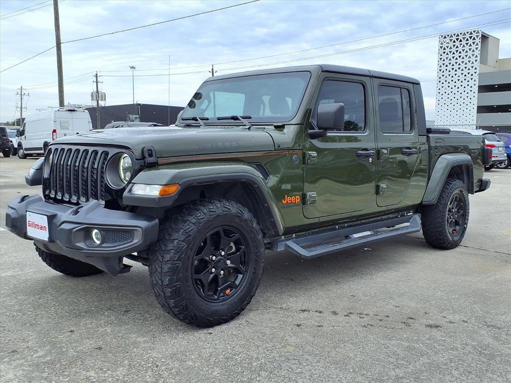 Gillman's Lifetime Engine Warranty lasts as long as you own your vehicle - free with the Gillman Pre-Owned Promise. If the vehicle isn't right for you, return it in purchase condition within 2 days or 200 miles as part of our Happy-Driving Guarantee. (Valid on vehicles under 90,000 miles and less than 7 years old). Conquer any terrain in this striking Dark Green 2022 Jeep Gladiator Willys 4x4 Crew Cab. Built for adventure and utility, it features a robust 3.6L V6 engine paired with a 6-speed manual transmission for hands-on control. The legendary Willys trim delivers rugged capability with monotube shocks, rear limited slip differential, and powertrain skid plates. Enjoy comfort and tech with the 8.4-inch Uconnect infotainment system, Apple CarPlay, Android Auto, and Alpine premium audio. The MOPAR spray-in bedliner, removable soft top, and black 3-piece hard top maximize versatility. Stay connected and secure with SiriusXM Guardian, a rearview camera, and proximity keyless entry with remote start. The Gladiator's class II trailer hitch, 7-pin wiring, and rear tow hooks make towing a breeze. With a bold look-black grille, running boards, and fender flares-plus features like heated mirrors, cruise control, and a locking center console, this Jeep is ready for work or play. Schedule your test drive today and experience the Gladiator difference! All vehicles subject to prior sale. We are not responsible for typographical errors and may change information without notice. Photos may not depict the actual vehicle. Tax, title, and license fees not included. Dealer Discount available to all buyers.Vehicles purchased from Gillman Automotive Group include a Bring It Back Guarantee: return the vehicle in purchase condition within two days or 200 miles. New current-model-year vehicles and qualifying pre-owned vehicles (under 90,000 miles and less than 7 years old) are eligible. Guarantee is non-transferable and has no cash value. Lifetime Warranty available on select pre-owned vehicles. See dealer for details; restrictions may apply.