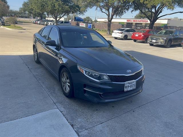 Experience comfort and reliability with this dark gray 2016 Kia Optima LX 4dr Sedan. Powered by a fuel-efficient 2.4L I4 engine paired with a smooth 6-speed shiftable automatic transmission, this Optima is ready for your daily commute or weekend getaway. Enjoy the convenience of Bluetooth wireless connectivity and auxiliary audio input for your music and calls, plus cruise control and steering wheel-mounted audio controls for easy operation. Safety features include a rearview camera, dual front and side curtain airbags, traction and stability control, and a tire pressure monitoring system. The interior offers supportive cloth bucket seats with manual adjustments, ample storage options including door pockets and a front console with armrest, and dual illuminated vanity mirrors. The exterior stands out with aluminum alloy wheels and body-color accents. Enjoy SiriusXM satellite radio, keyless entry, and split-folding rear seats for added versatility. This well-maintained Optima is an excellent choice for those seeking style, practicality, and value.