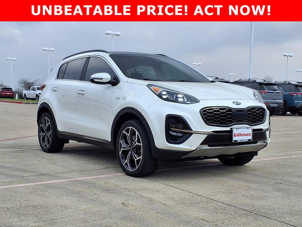 Gillman's Lifetime Engine Warranty lasts as long as you own your vehicle - free with the Gillman Pre-Owned Promise. If the vehicle isn't right for you, return it in purchase condition within 2 days or 200 miles as part of our Happy-Driving Guarantee. Experience the thrill of driving with this White 2020 Kia Sportage AWD SX Turbo! Powered by a 2.0L Turbo I4 engine with 237hp and 260ft. lbs. of torque, this SUV delivers sporty performance and all-weather confidence with its full-time AWD and sport-tuned suspension. Step inside to enjoy luxury features like leather-trimmed upholstery, a power panoramic sunroof, Harman/Kardon premium audio, and an 8-inch touchscreen infotainment system with Apple CarPlay and Android Auto. Advanced safety tech includes Front Automatic Emergency Braking, Lane Keeping Assist, Adaptive Cruise Control, Blind Spot Safety, and Rear Cross Traffic Alert. Convenience is at your fingertips with a power liftgate, heated and ventilated front seats, wireless charging, and integrated navigation. This Sportage SX Turbo blends performance, comfort, and technology for a truly premium SUV experience. Schedule your test drive today and see why the Kia Sportage SX Turbo stands out from the crowd! All vehicles subject to prior sale. We are not responsible for typographical errors and may change information without notice. Photos may not depict the actual vehicle. Tax, title, and license fees not included. Dealer Discount available to all buyers.Vehicles purchased from Gillman Automotive Group include a Bring It Back Guarantee: return the vehicle in purchase condition within two days or 200 miles. New current-model-year vehicles and qualifying pre-owned vehicles (under 90,000 miles and less than 7 years old) are eligible. Guarantee is non-transferable and has no cash value. Lifetime Warranty available on select pre-owned vehicles. See dealer for details; restrictions may apply.